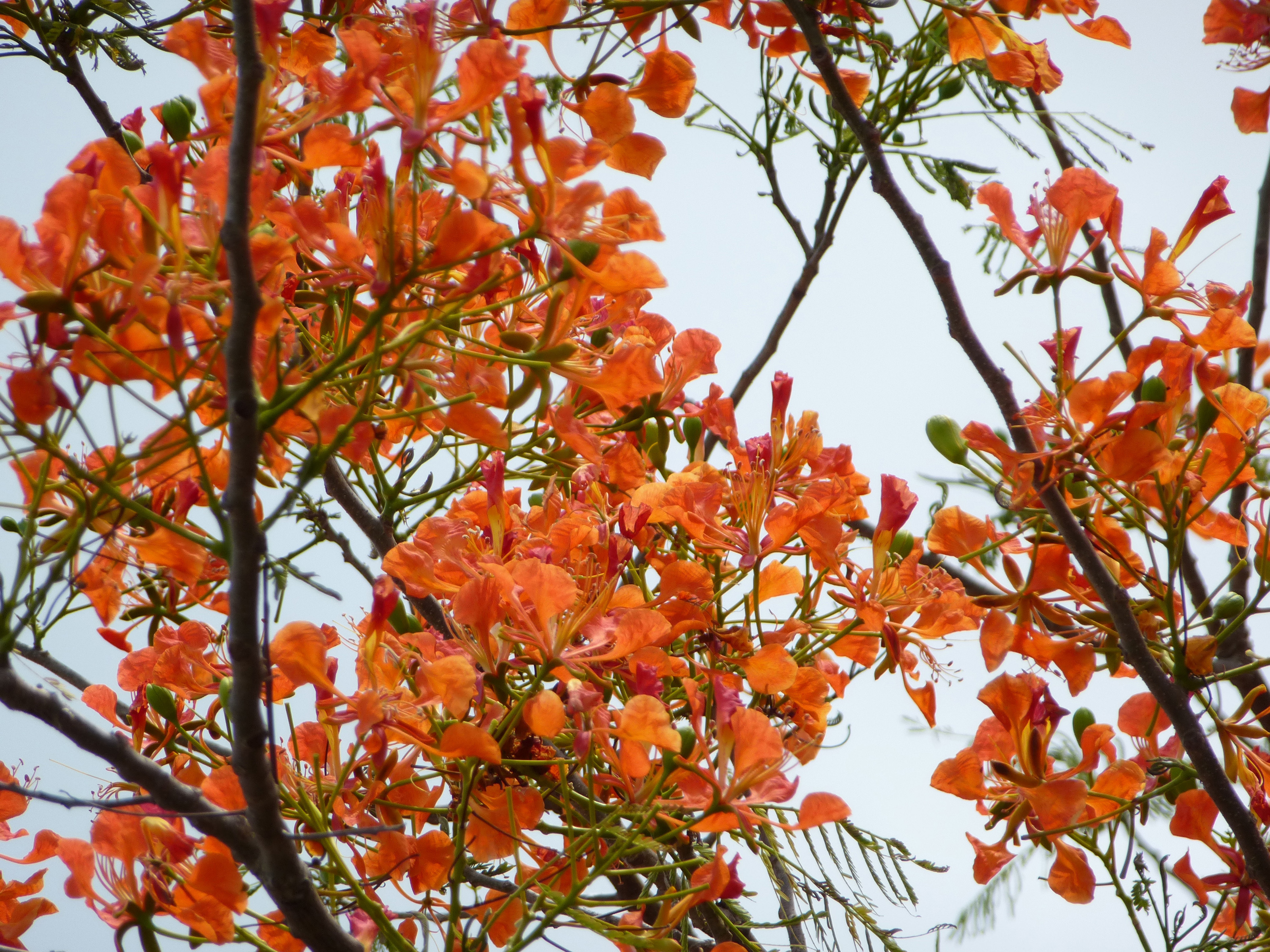 Keywords: flame tree, branches, orange, red, flowers, vibrant, sky, plant, nature, blossom