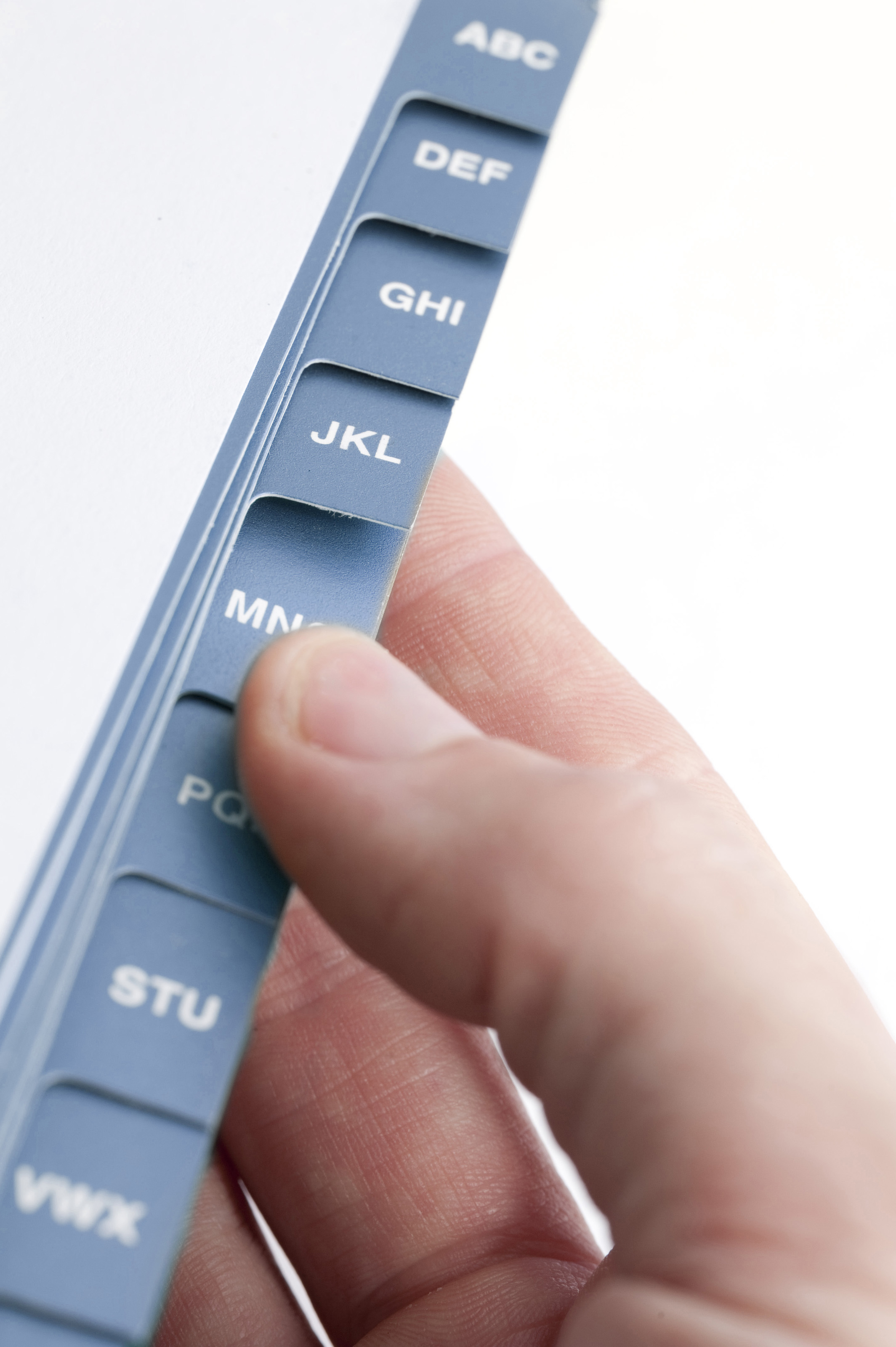 Keywords: information, male, man, letters, looking, fingers, book, index, searching, address, alphabetical, directory, locate, organise, tabs