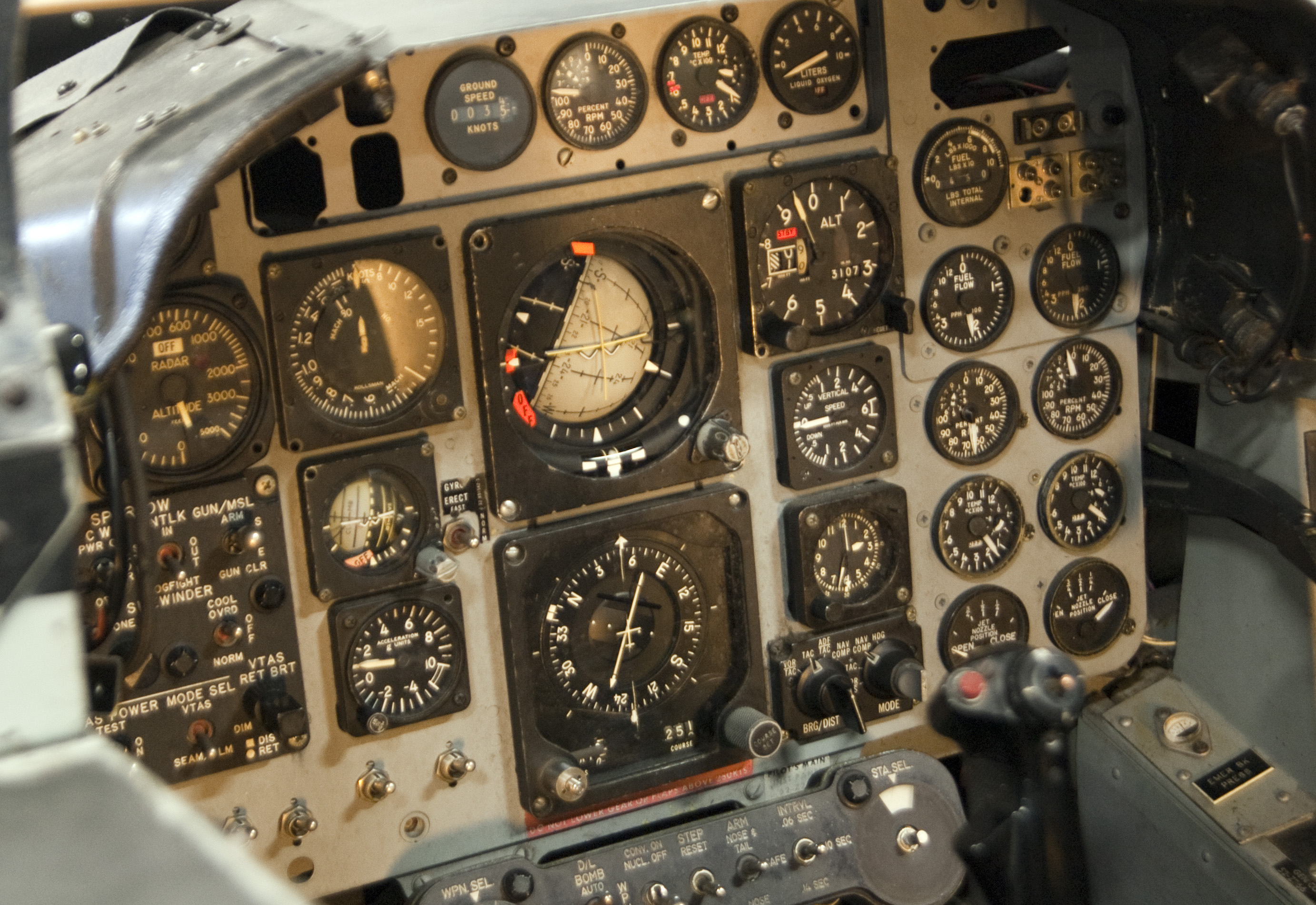 flight instruments an gauges on a military aircraft