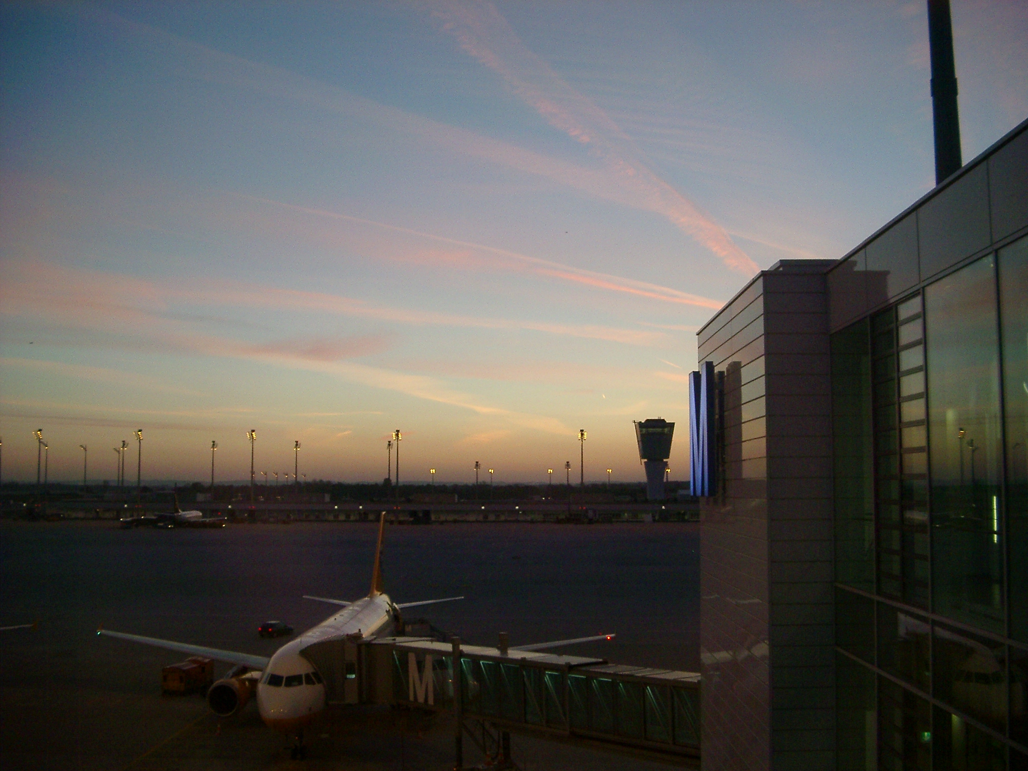 Keywords: transport, transportation, sunset, gate M, terminal, sky bridge, aerobridge, skybridge, boardng, departure gate, departures