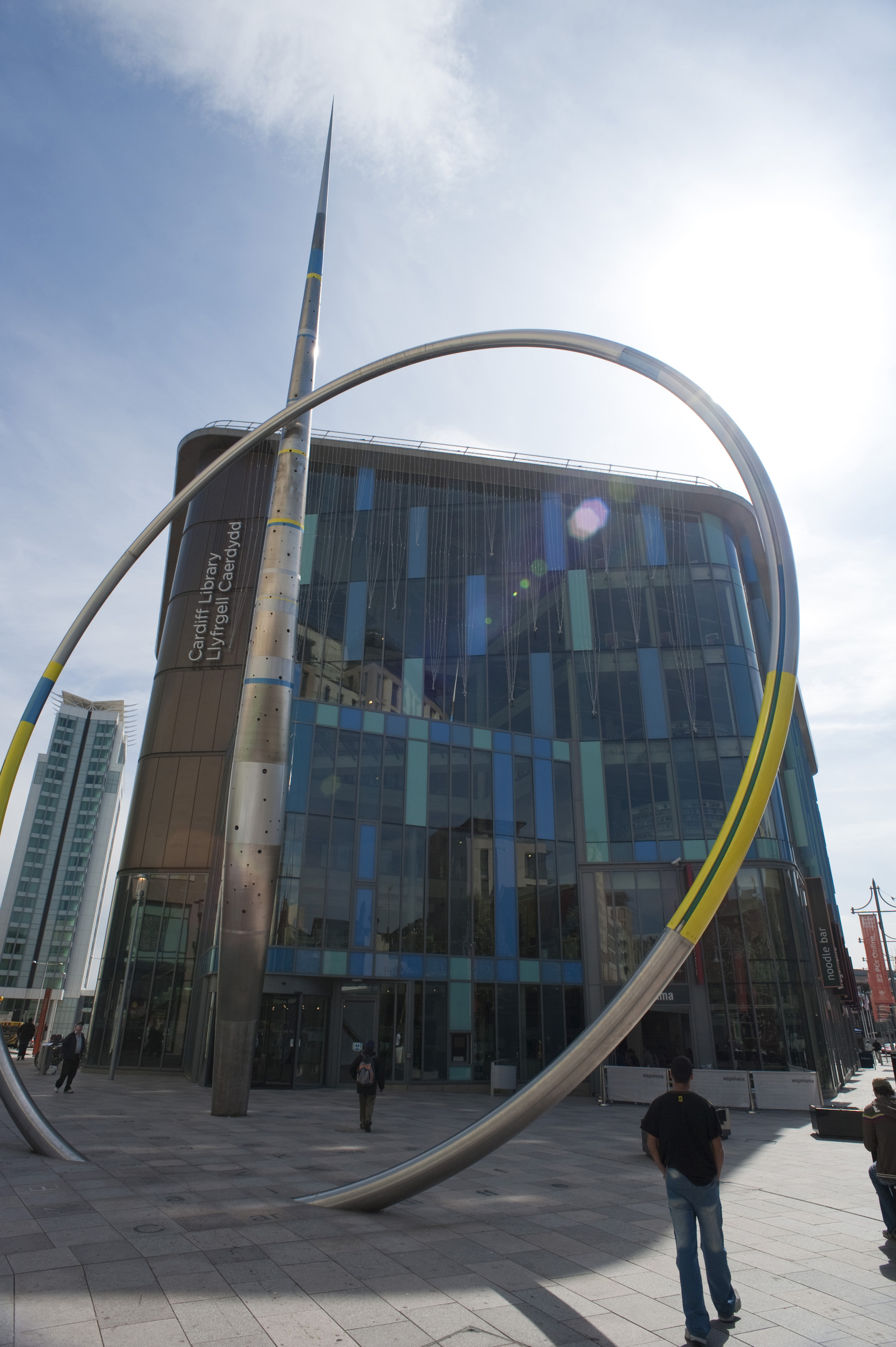 Keywords: modern, urban, metal, glow, design, steel, arrow, landmark, sculpture, artwork, sightseeing, column, stainless, tidal, enamel, hoop, wales, cardiff, alliance sculpture, jean-bernard metais