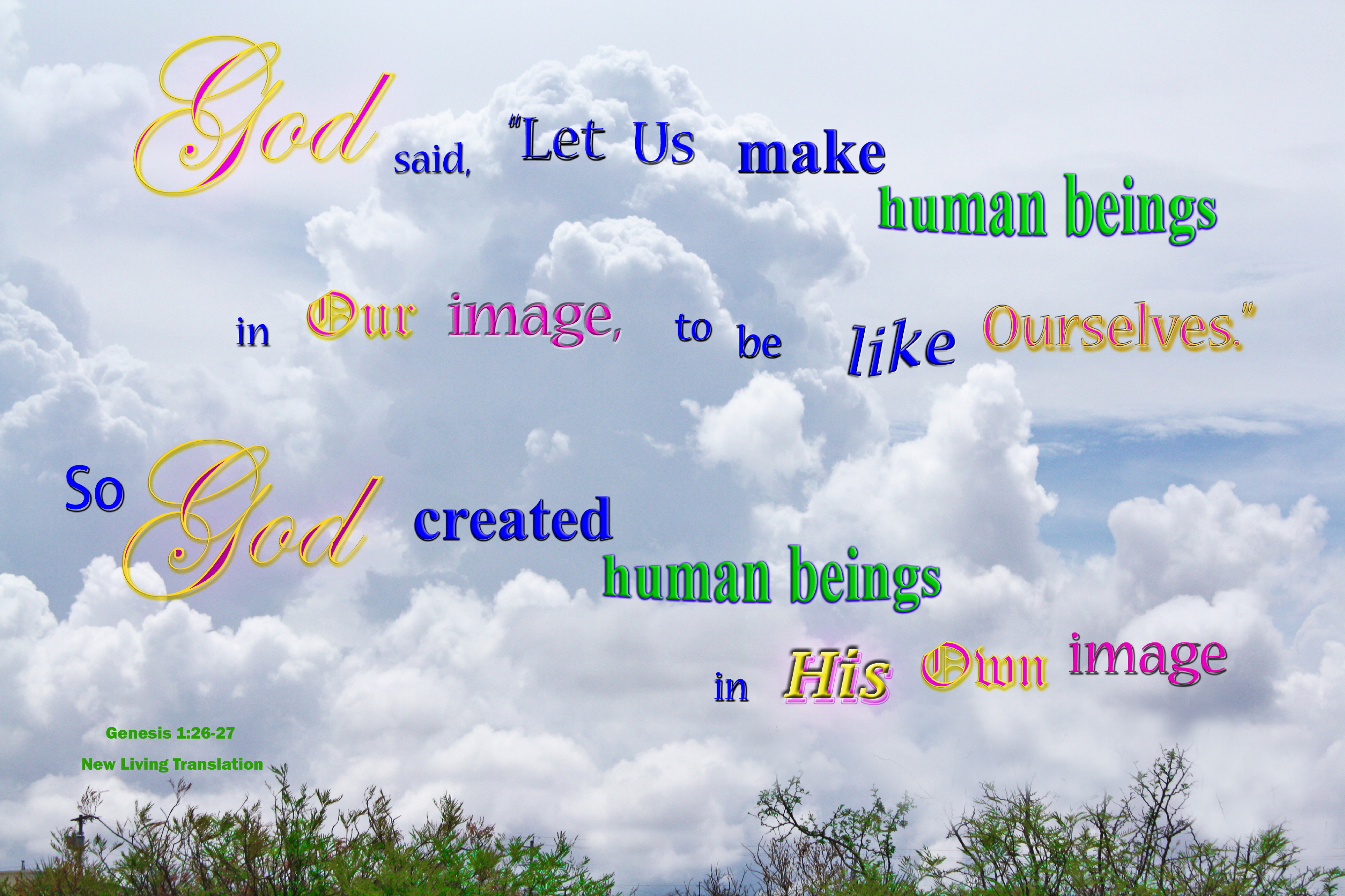 Billowing Clouds with words that God made Humans in His Own ImagePhoto Title: God Made Humans in His Own Image