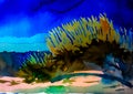 bullrushes agains a blue sky, growing in wetlands
