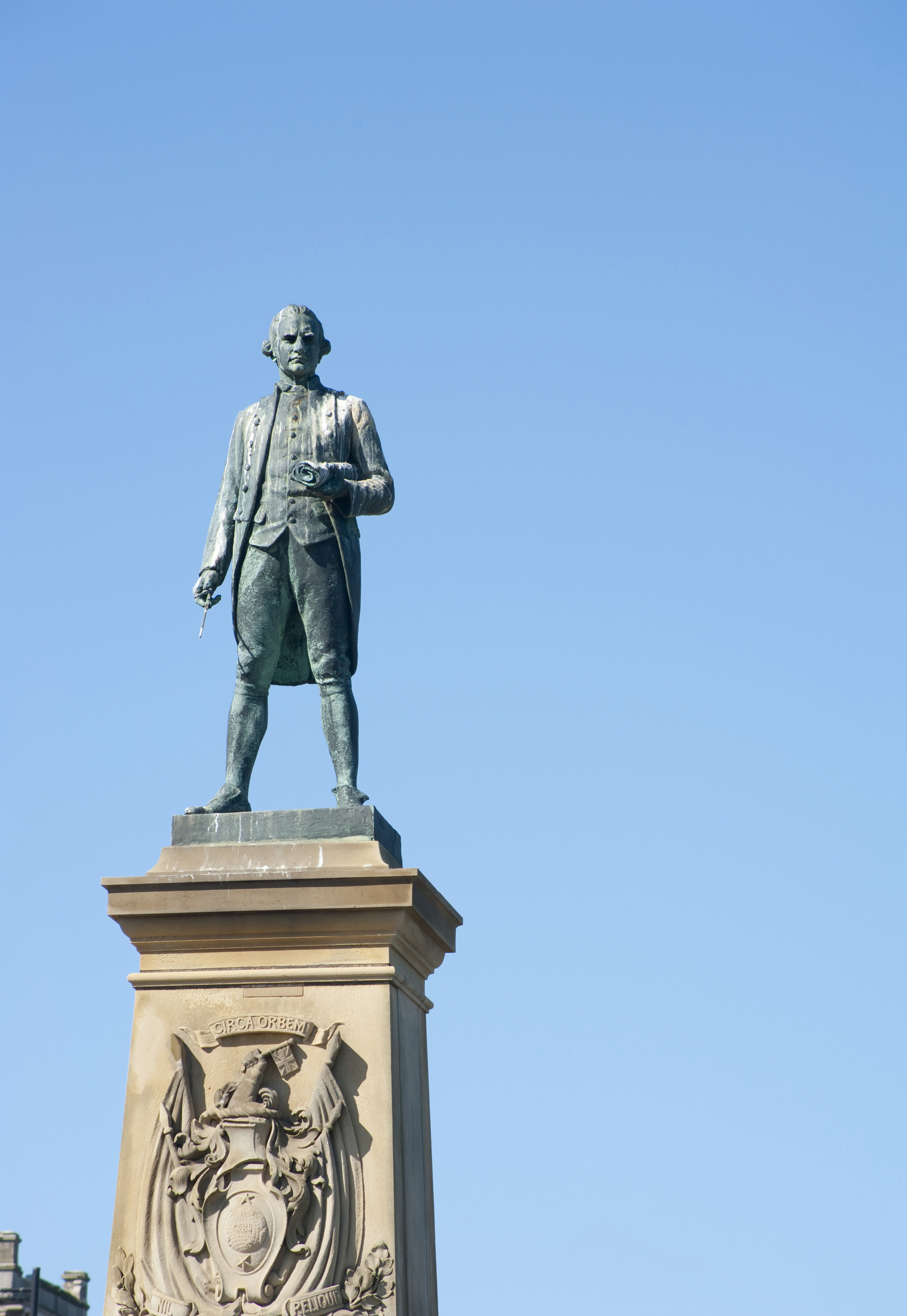 Captain Cook statue against the blue sky background