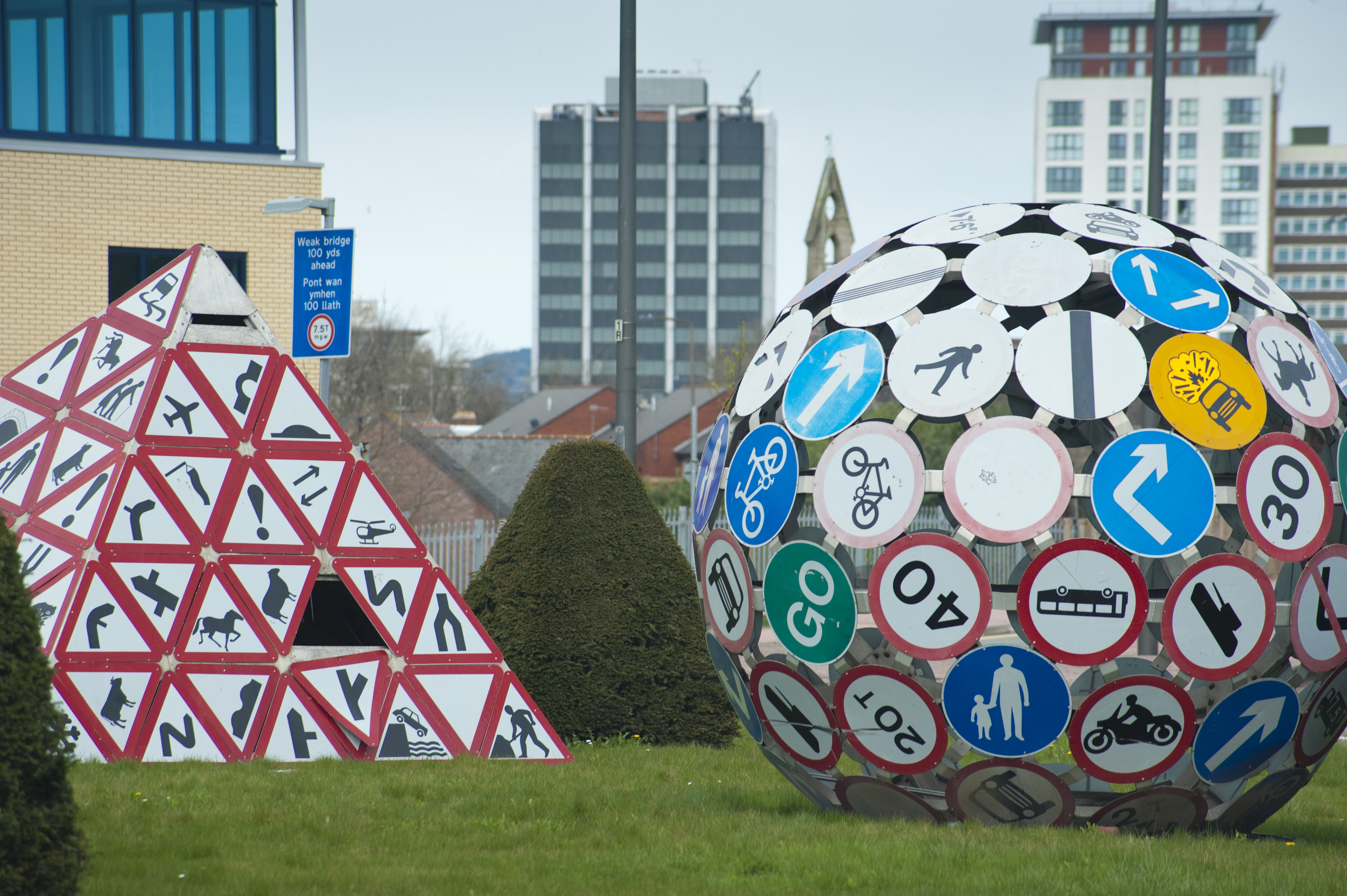 Keywords: cardiff, magic roundabout, sculpture, road signs, pierre vivant, ocean way roundabout, signage, transportation, signs, road, unique, sculpted, splott, modern, art, different, unusual, wales, landmark, welsh