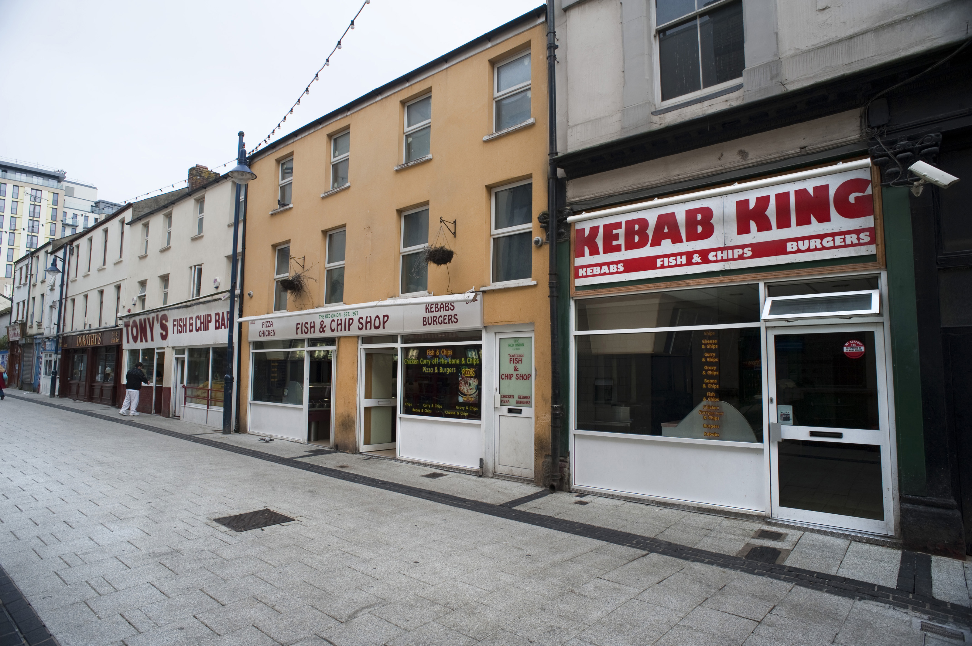 Keywords: street, urban, food, city, exterior, facade, fast, buildings, shops, wales, cardiff, welsh, kebabs, chippy lane, chip alley, caroline street, caroline, retails, businessiness, takeaways