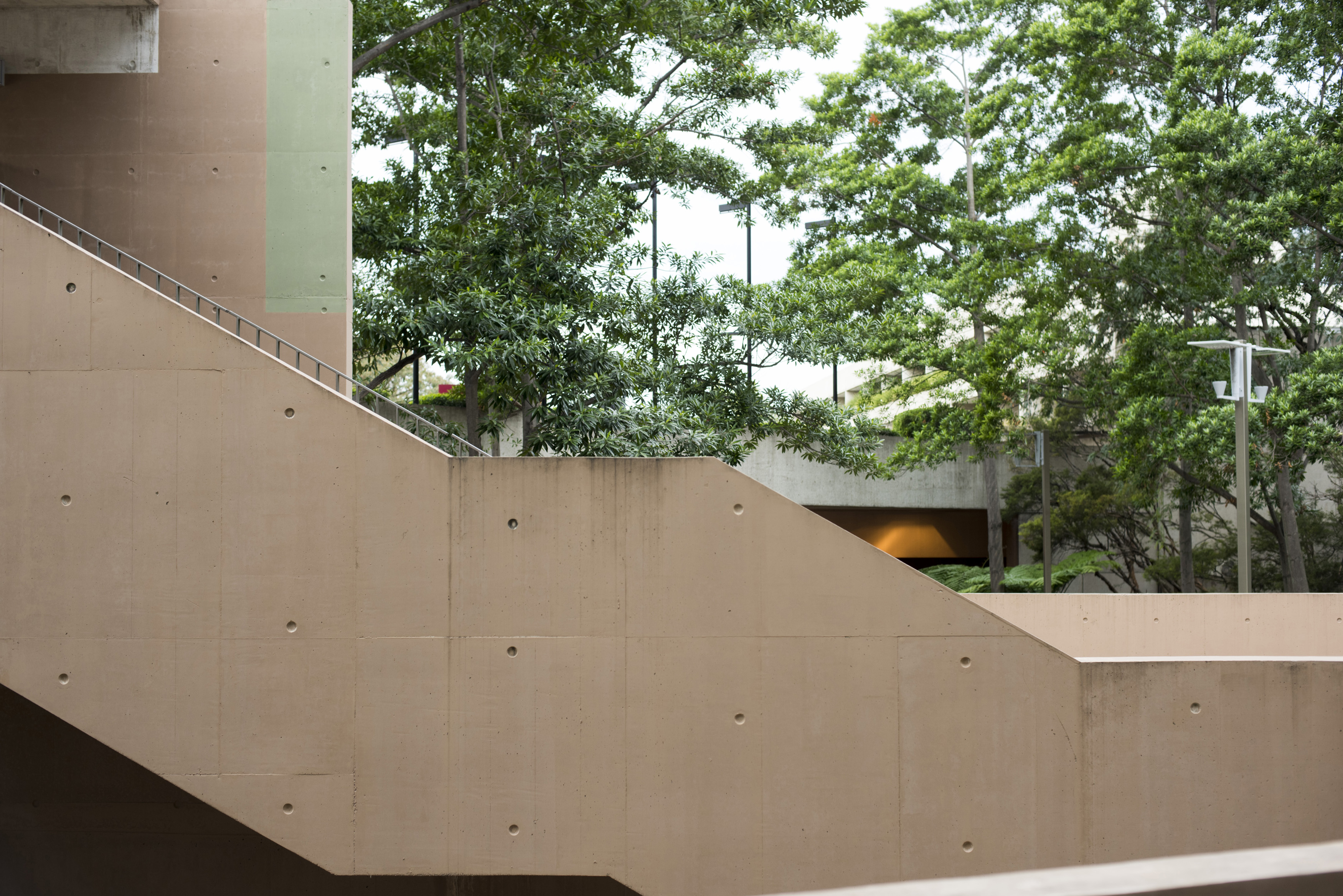 Keywords: concrete, outdoors, stairs, stairwell, trees, architecture, descending, baluster, exterior, steps