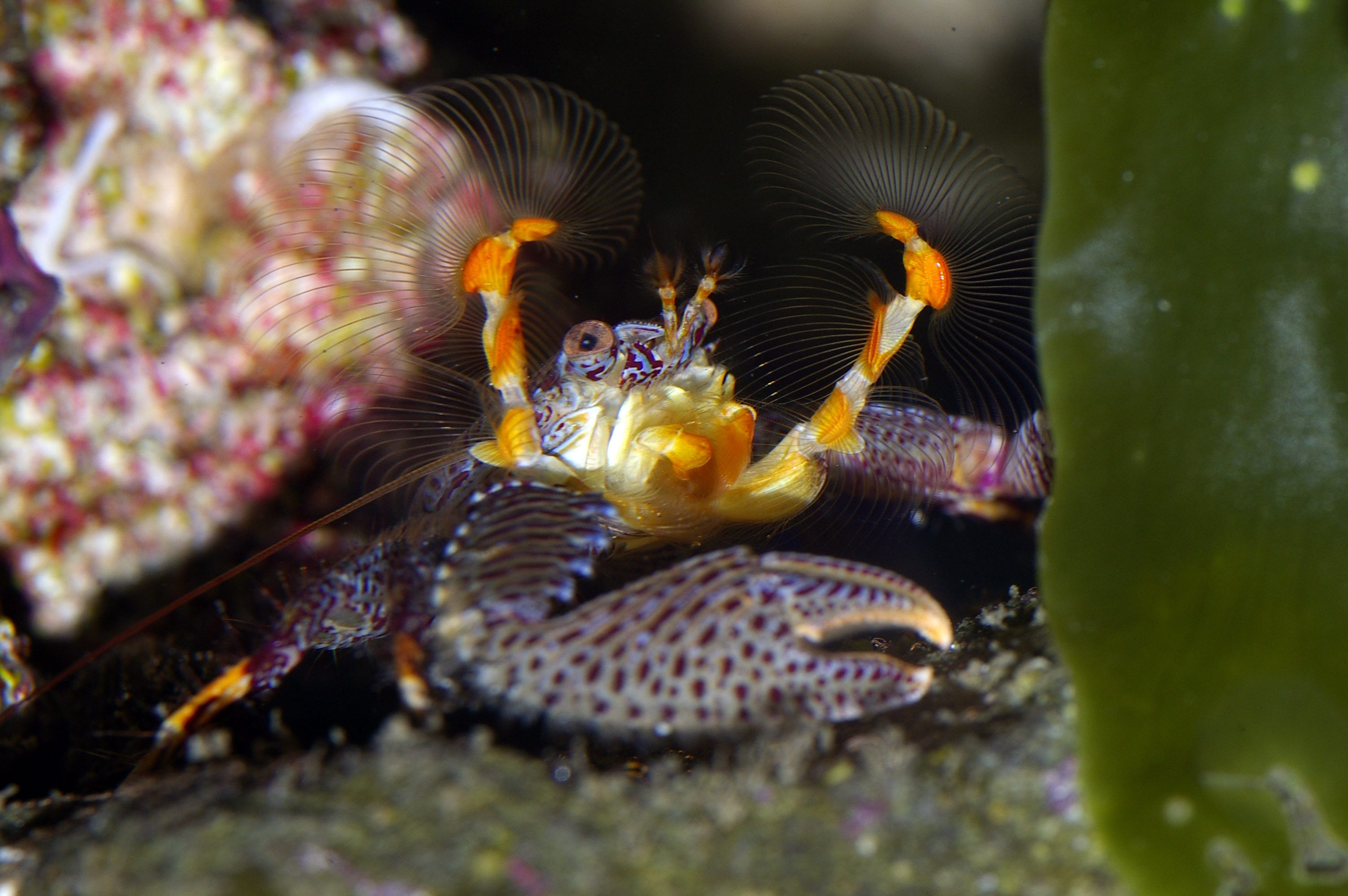 underwater marine life, a colourful crab