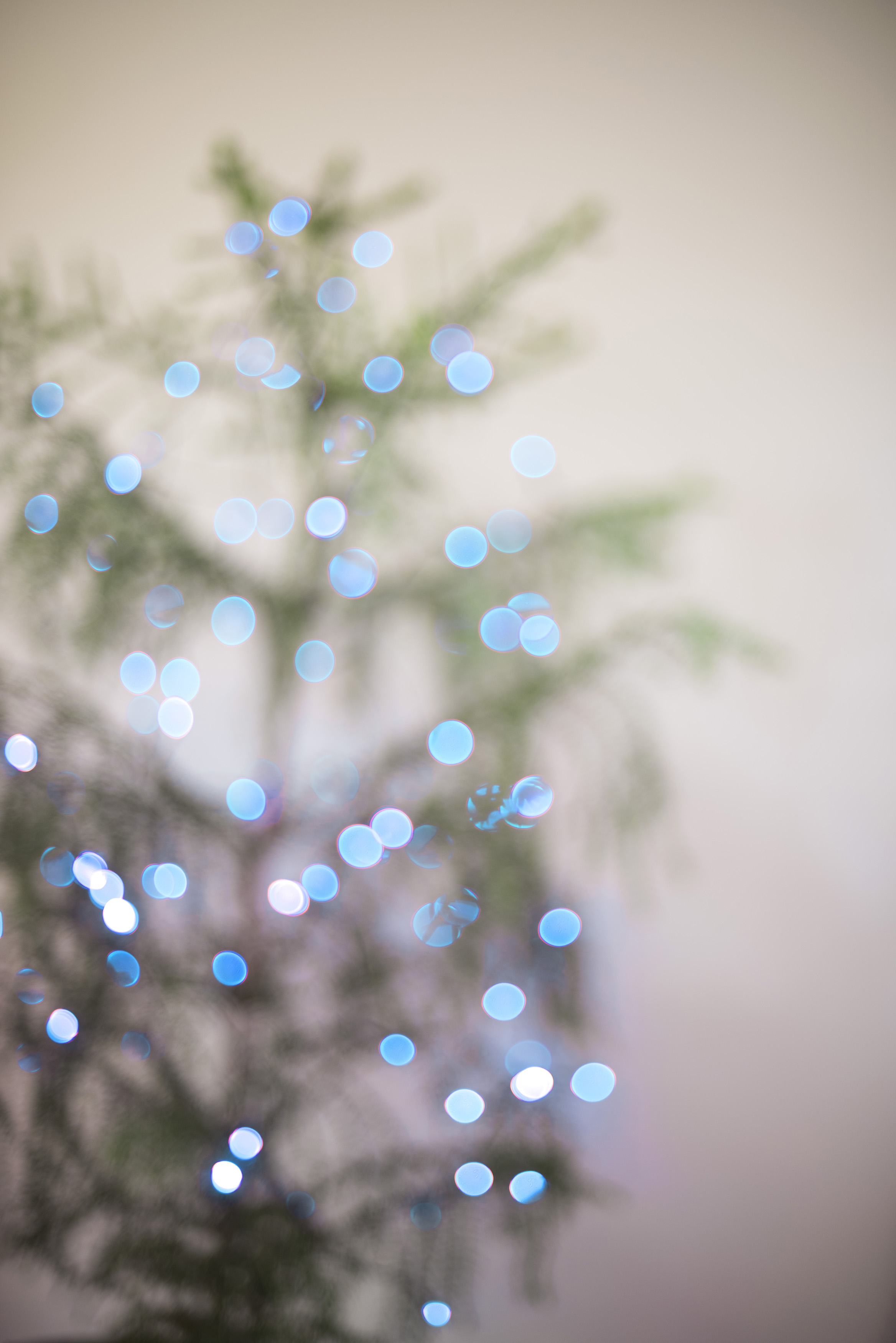 defocused blue coloured lights on a tree creating a festive sparkling background