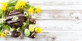 Photo Title: Yellow spring daffodils and chocolate Easter eggs