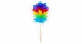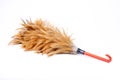 Making a clean sweep - close up Feather Duster on a Wooden Stick Isolated on White Background with Copy Space on Top.