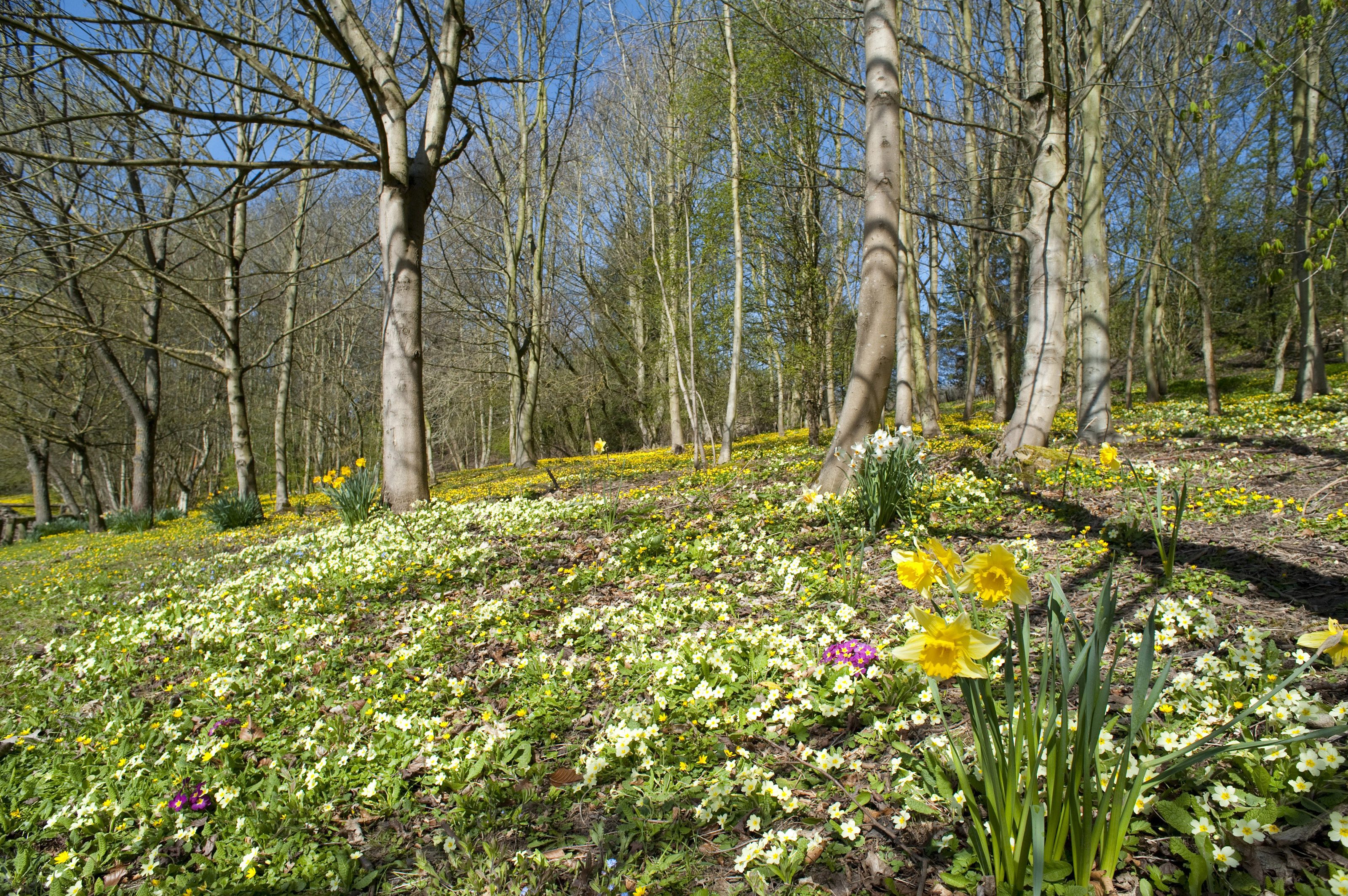 Keywords: trees, woodland, yellow, wild, spring, season, display, bulbs, easter, flowers, flowering, primrose, primula, blooms, daffodils