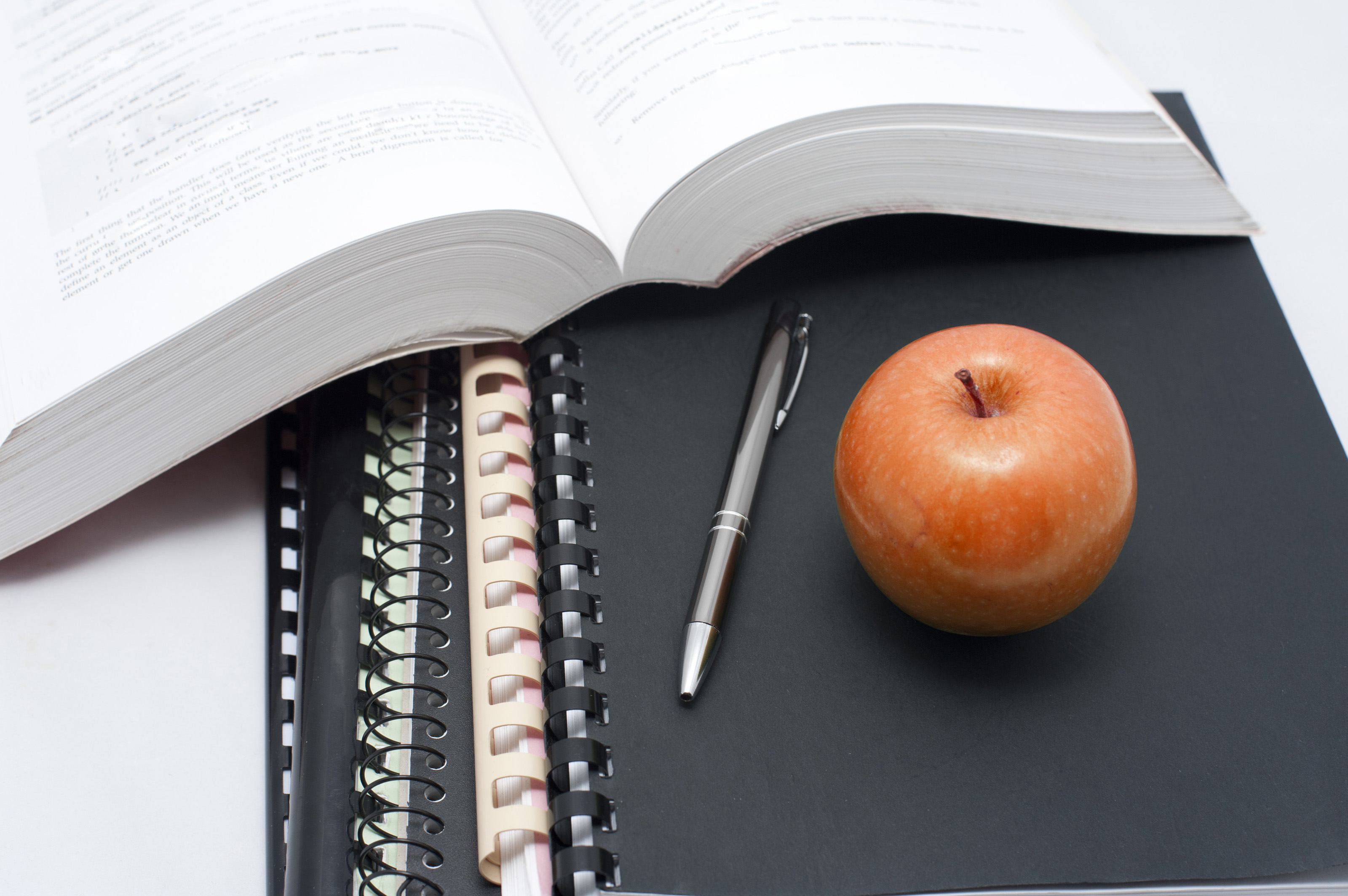 Keywords: learning, red, pen, fresh, open, apple, healthy, college, education, school, spiral, bound, studies, textbook, notebooks
