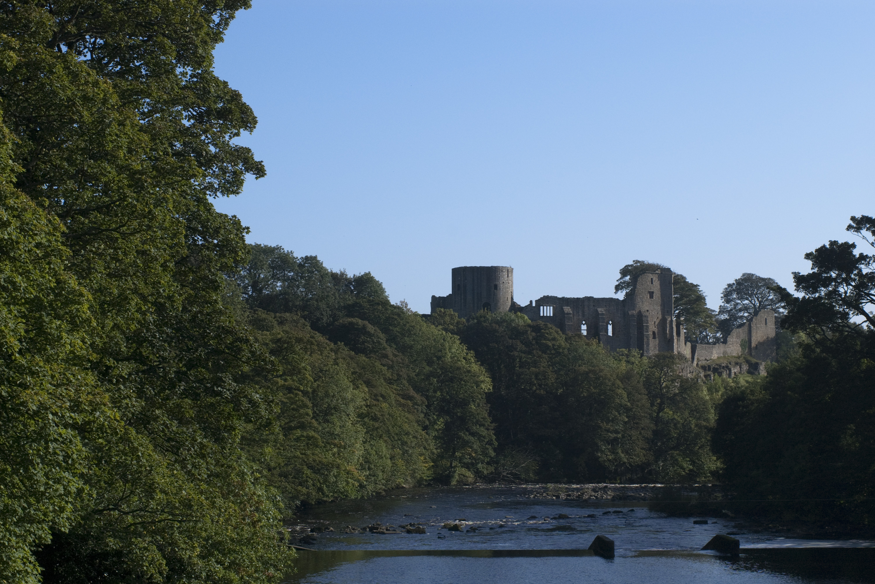 Keywords: walls, stone, ruin, water, river, trees, summer, green, blue, sky