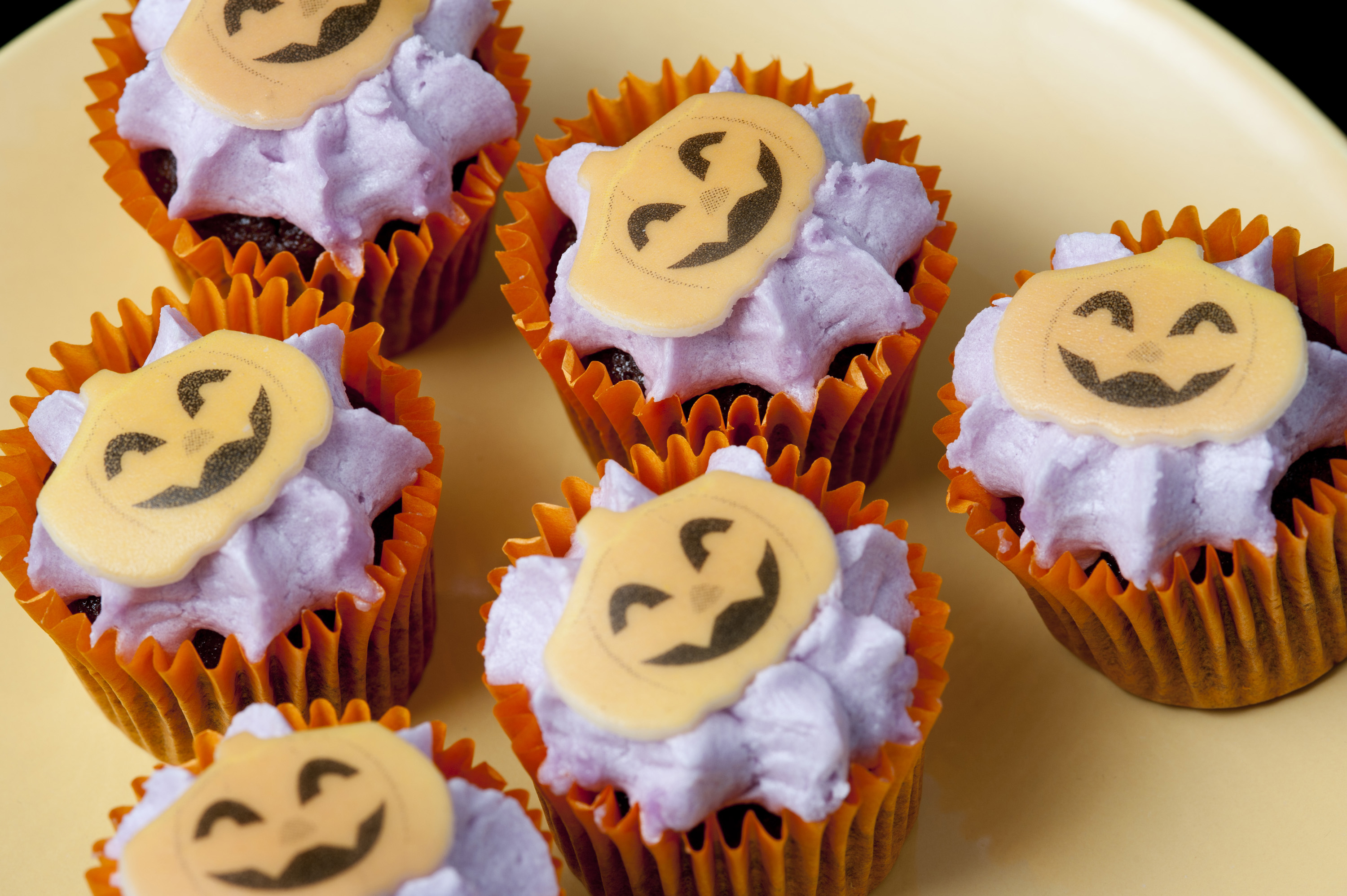 Keywords: halloween, trick or treat, treats, sweet, cake, food, novelty, decorated, iced, icing, orange, jack o lantern, pumpkin, face, creepy, fun