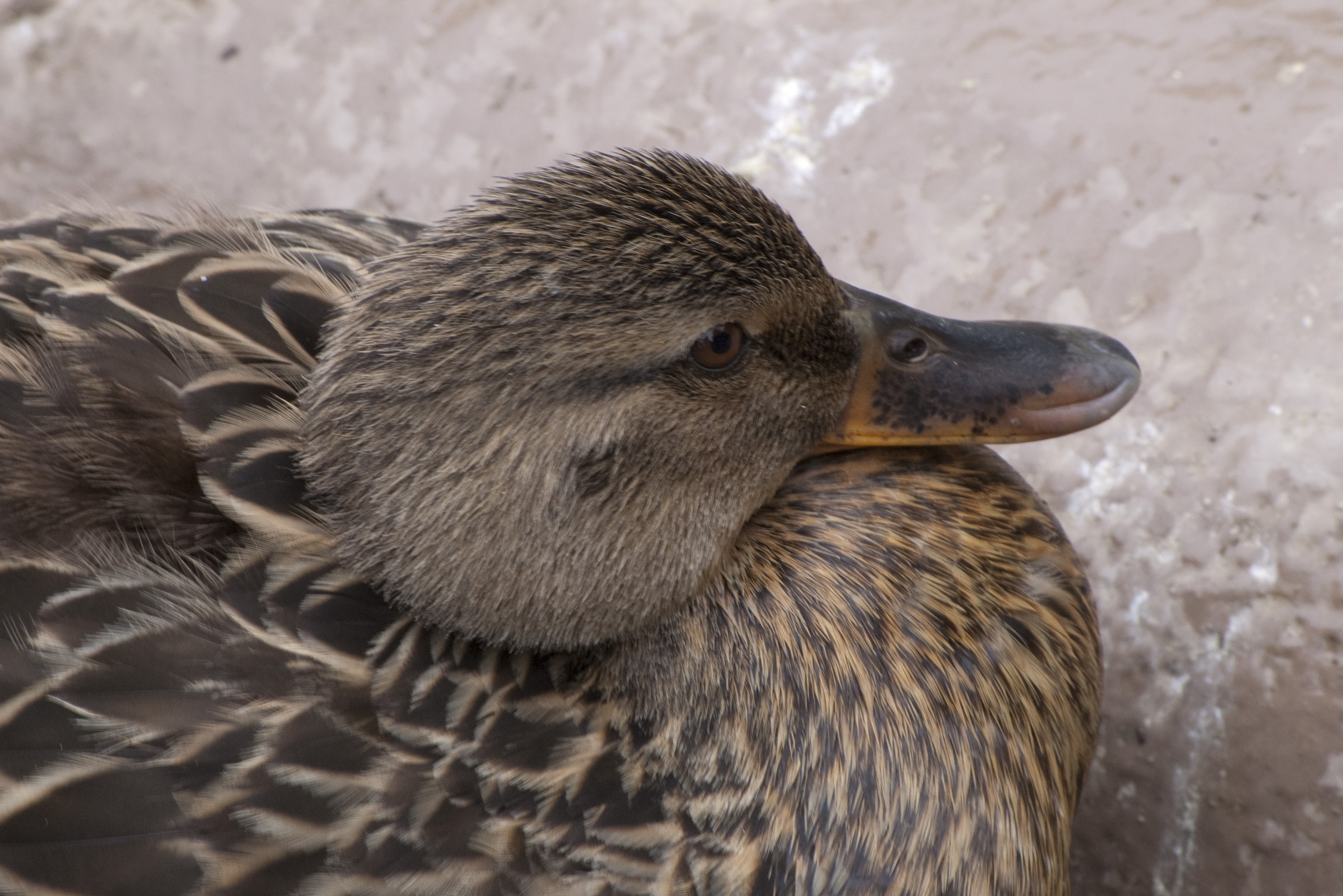 Keywords: duck, closeup, head, detail, feathers, sitting, nesting, mallard, female