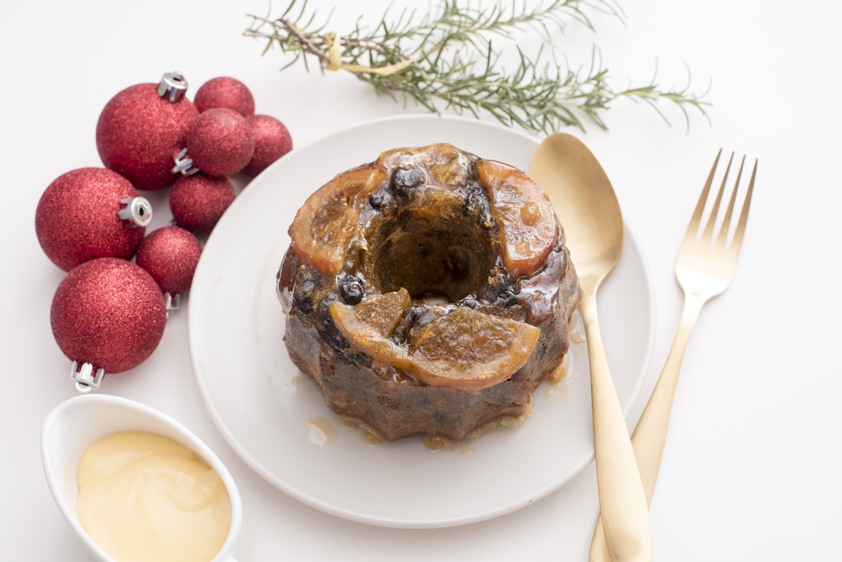 Keywords: festive, christmas, seasonal, holiday, xmas, pudding, dessert, brandy custard, brandy sauce, sweet, plum pudding, christmas pudding, brandy pudding, spoon, fork