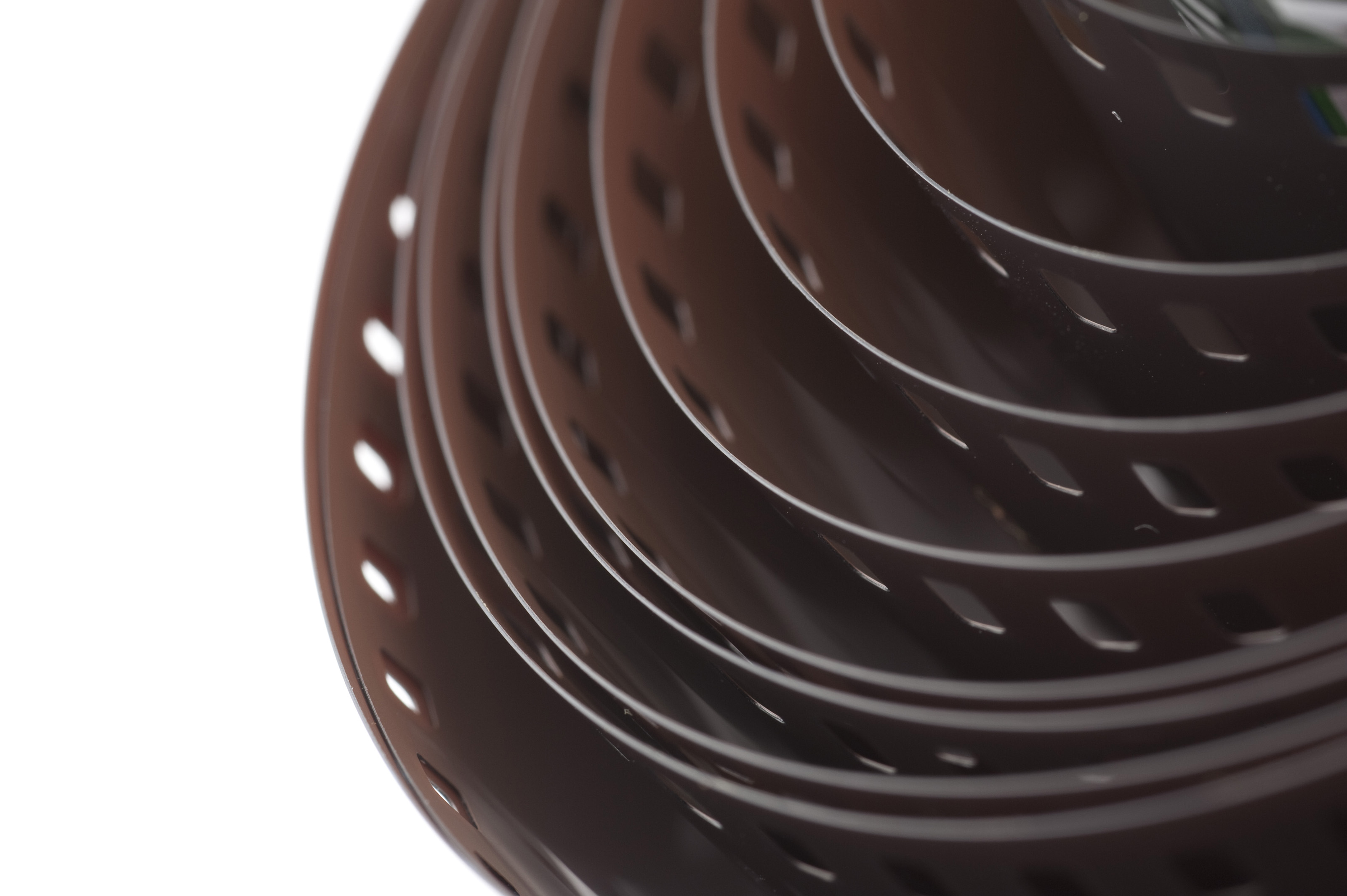 Extreme close up on unraveled roll of exposed analog film on white background