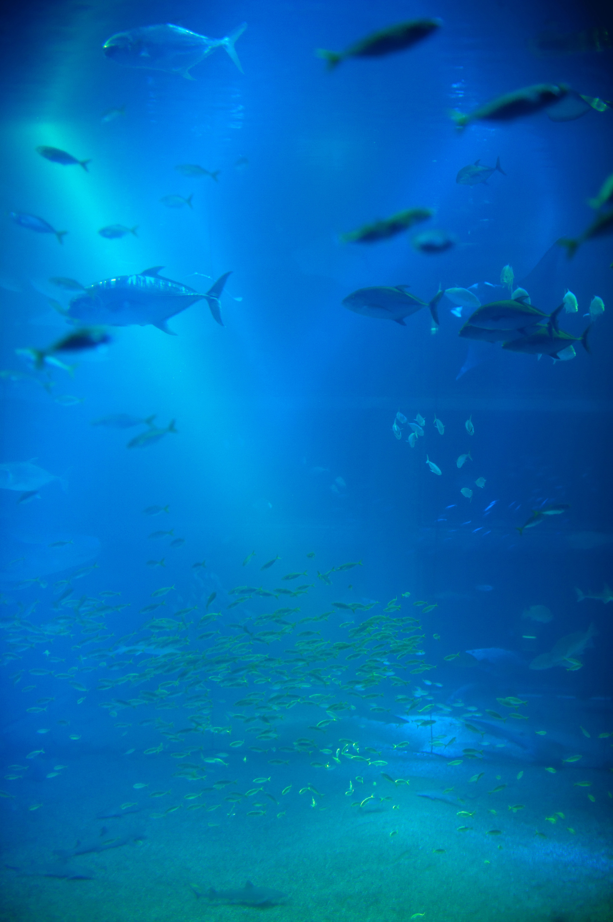 Keywords: blue, water, education, marine, recreation, biodiversity, fish, underwater, tourist attraction, marine biology, tank, aquarium, swimming, shoal, illuminated, ecology, habitat, exhibit, background, vertical
