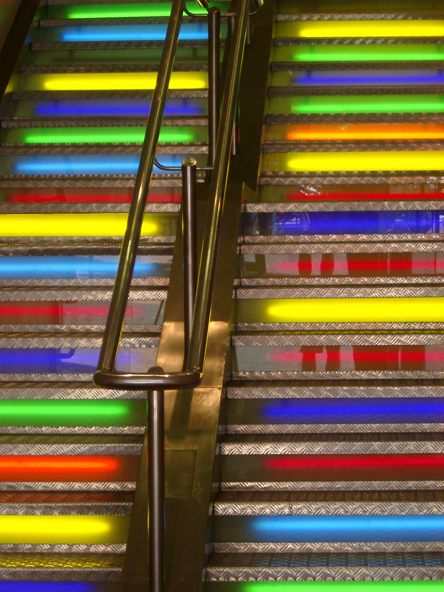 brightly coloured steps with flourescent illumination