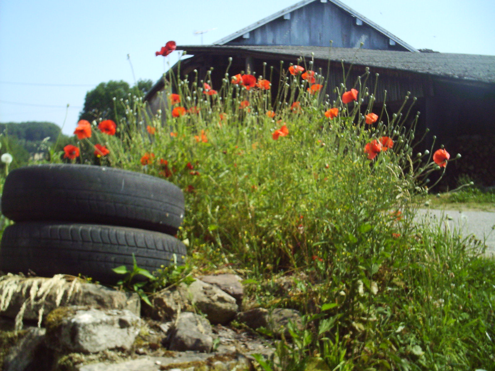 5141 france barn poppies - this image by groundation is licensed under a Creative Commons Attribution 3.0 Unported License.