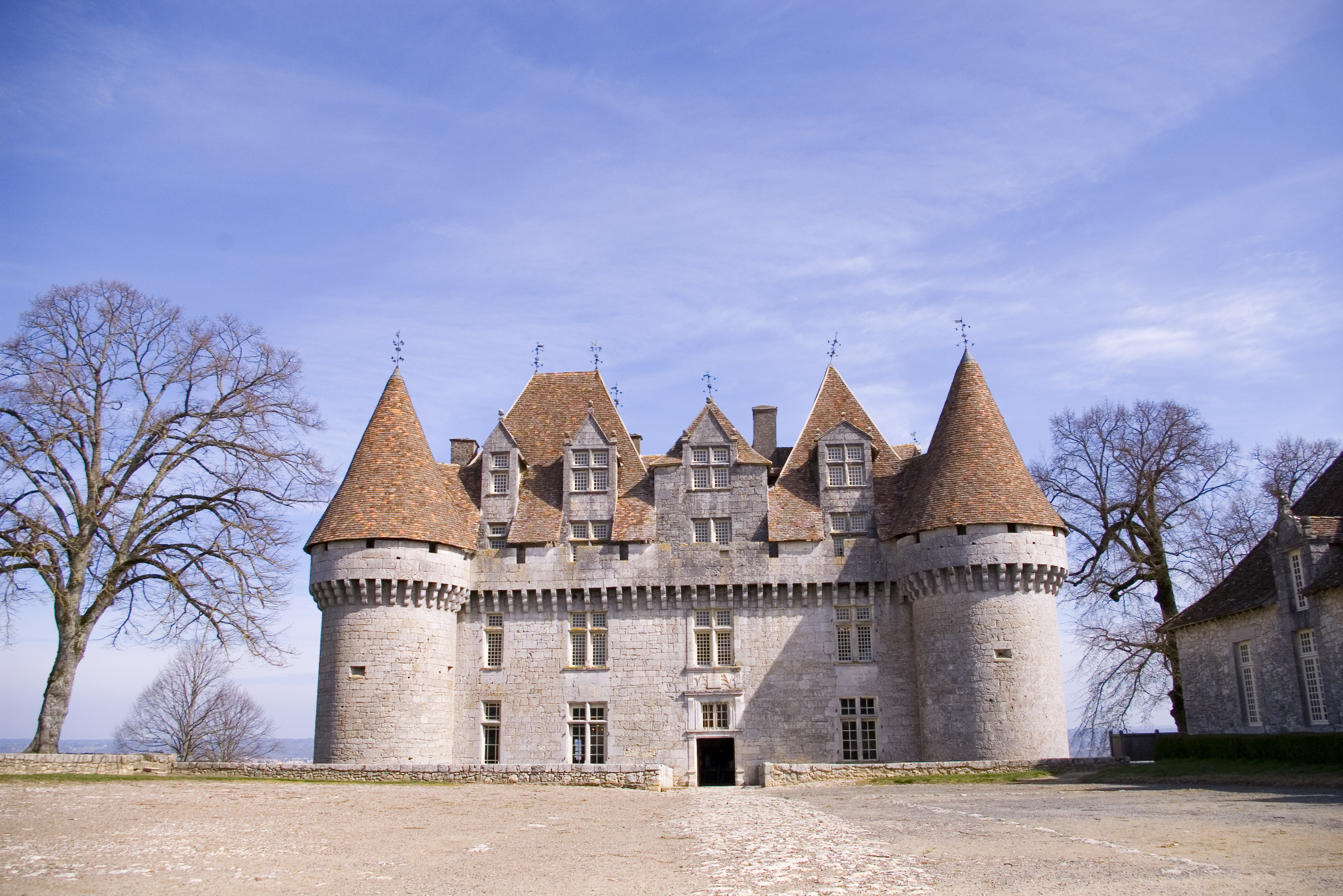 Keywords: castle, chateau, winery, stone, old, ornate, idilic, sky, roof, cone, conical