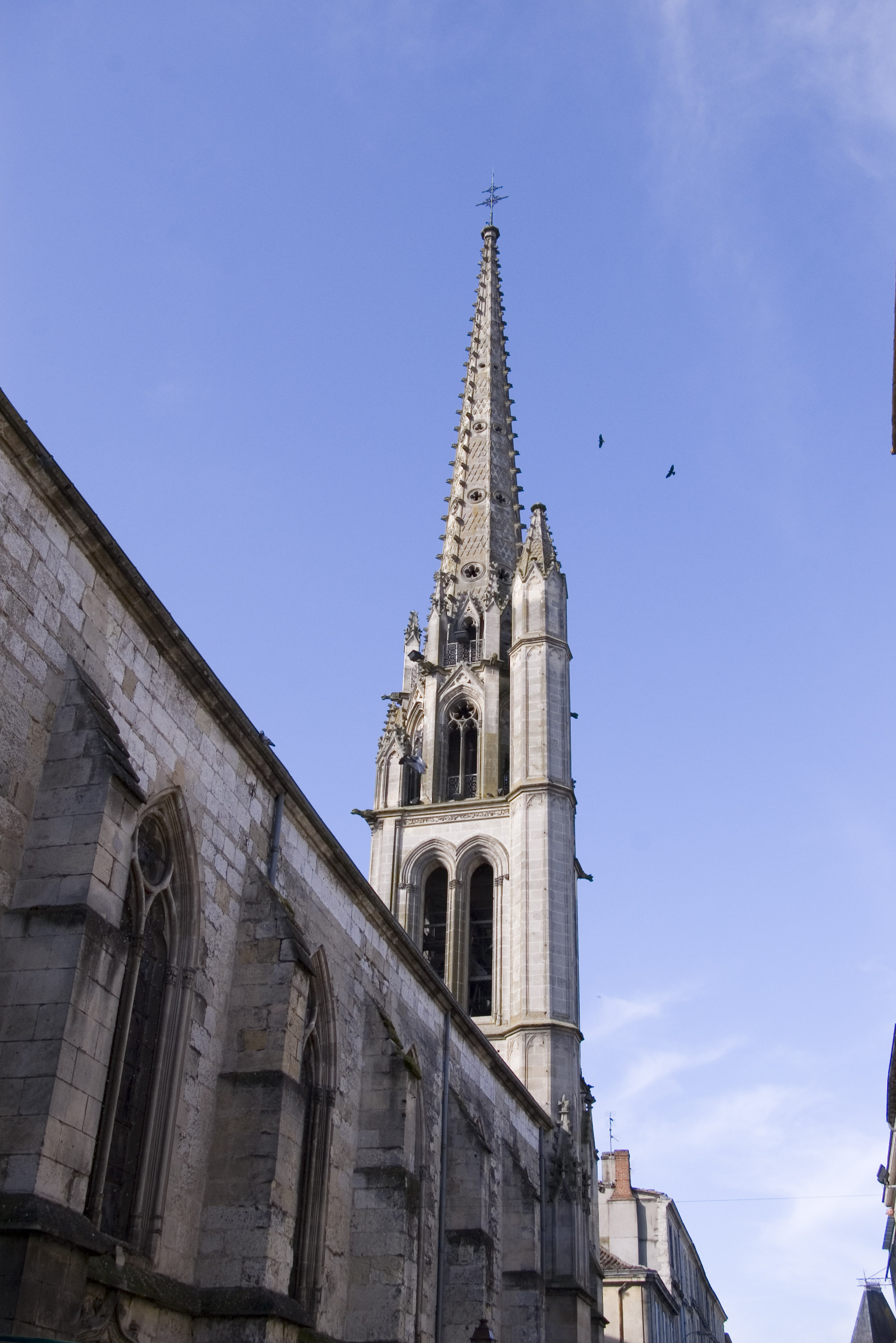 a french church tower with distinctive asymetric design