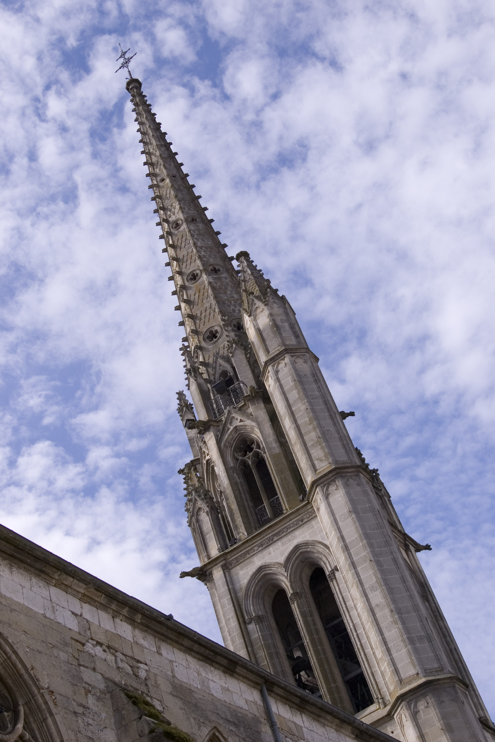 a french church tower with distinctive asymetric design