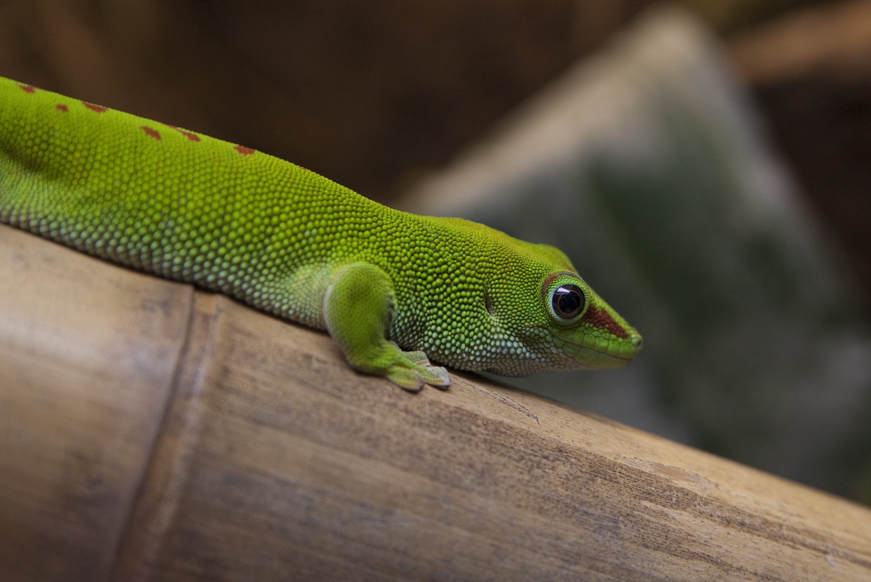Keywords: gecko, gekko, cane, bamboo, wood, eye, lizard, reptile, cold blood, scales, green