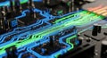 Photo Title: Glowing green electronic circuit on a PCB