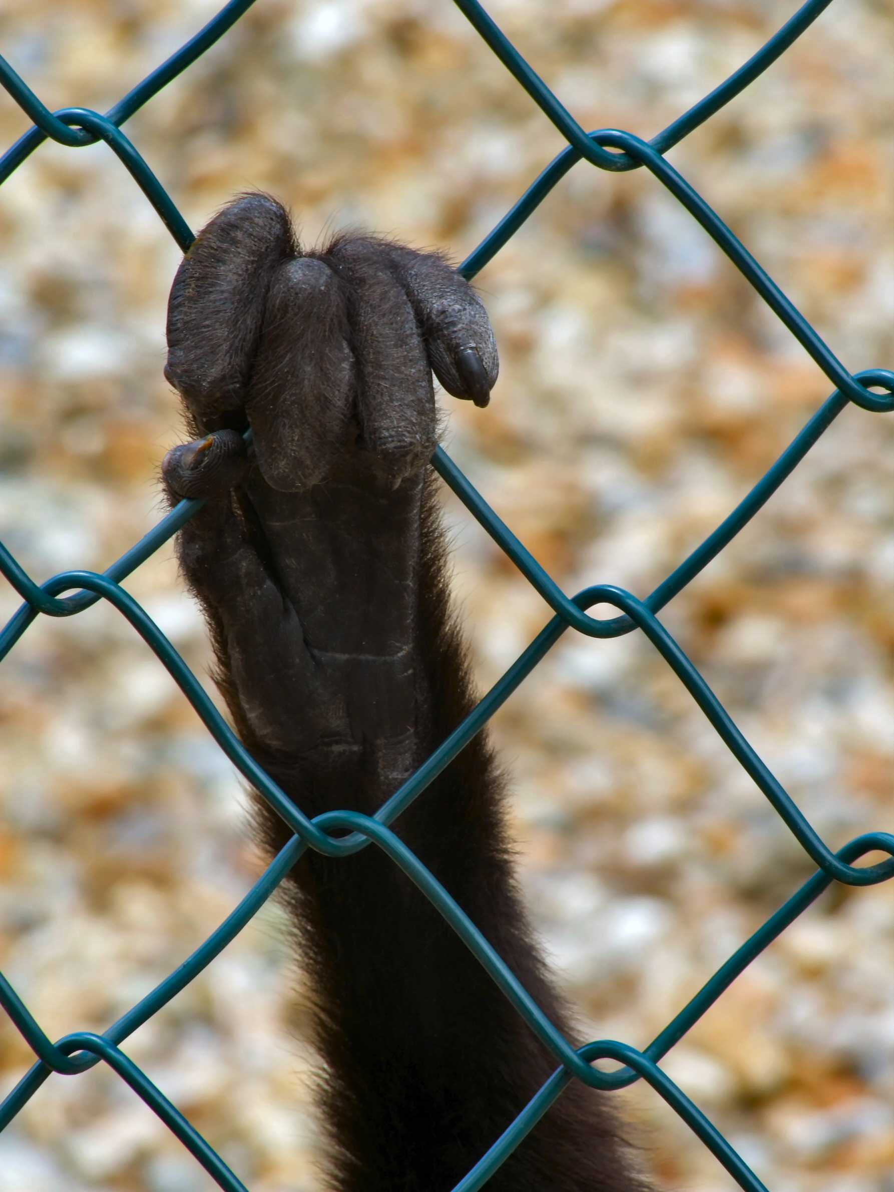 Looks rather poignant; in fact, a contented ape enjoying the susnshine at the Owl & Monkey Haven (animal rescue centre), Isle of Wight, England