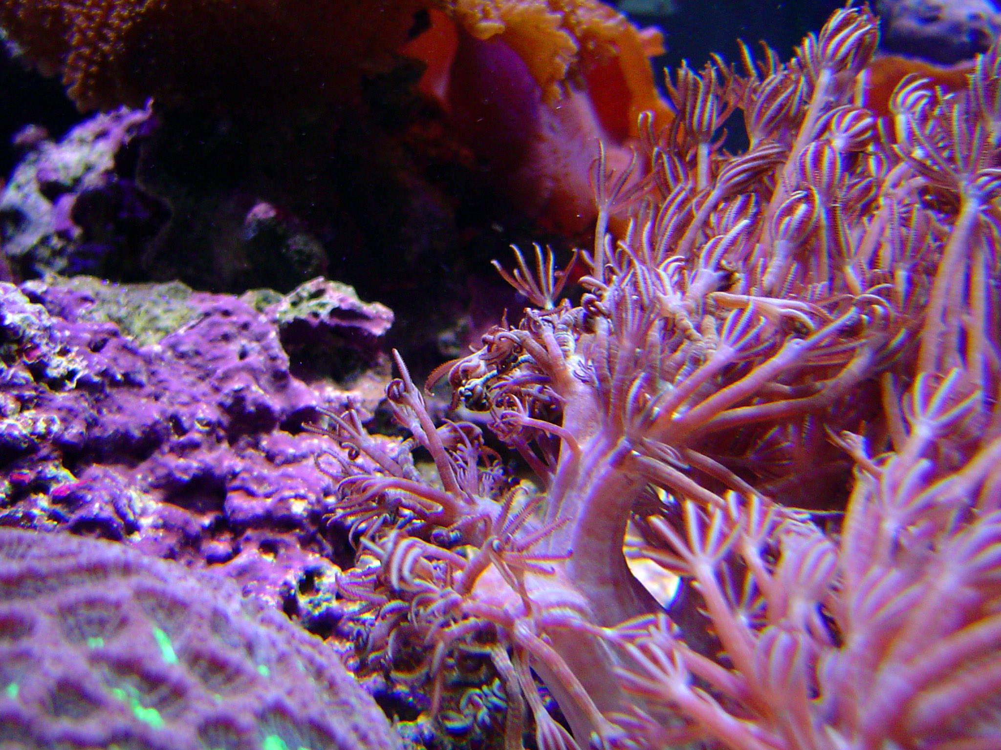 Keywords: coral, corals, soft, glowing, bright, coloured, colorful, Xeniidae, Heteroxenia Polyp