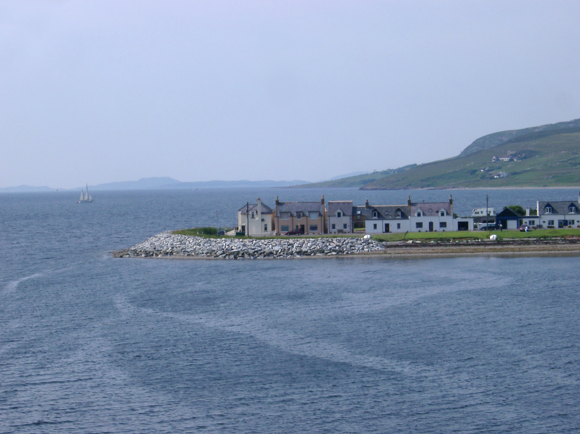 landscape of the scottish highlands, leaving ullapool on a ferry, looking out over a loch