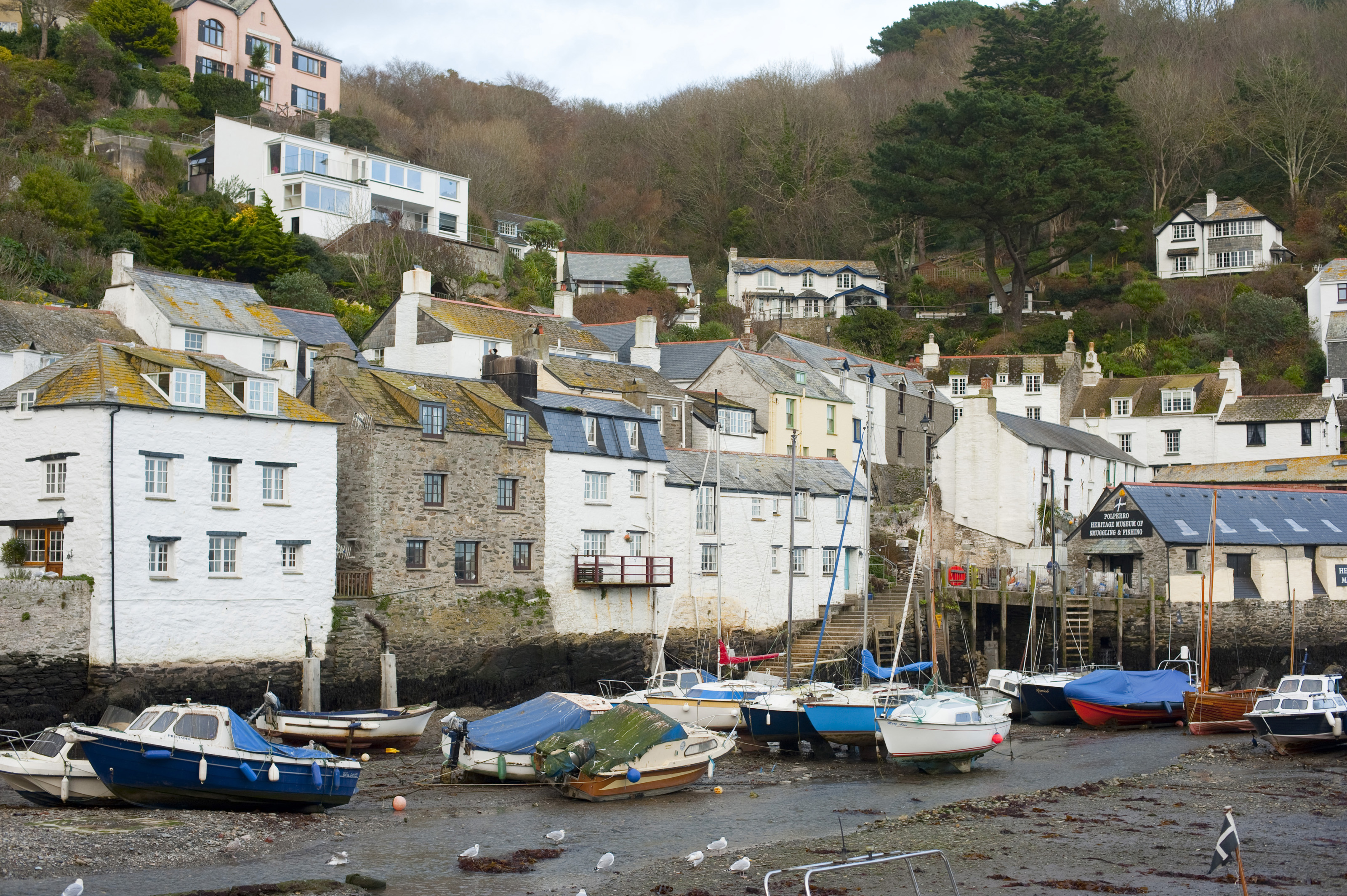 Keywords: travel, tourism, architecture, waterfront, coastal, traditional, fishing, village, boating, unspoilt, harbour, boats, low tide, hillside, quaint, cottages, white-washed, cornish, cornwall, polperro