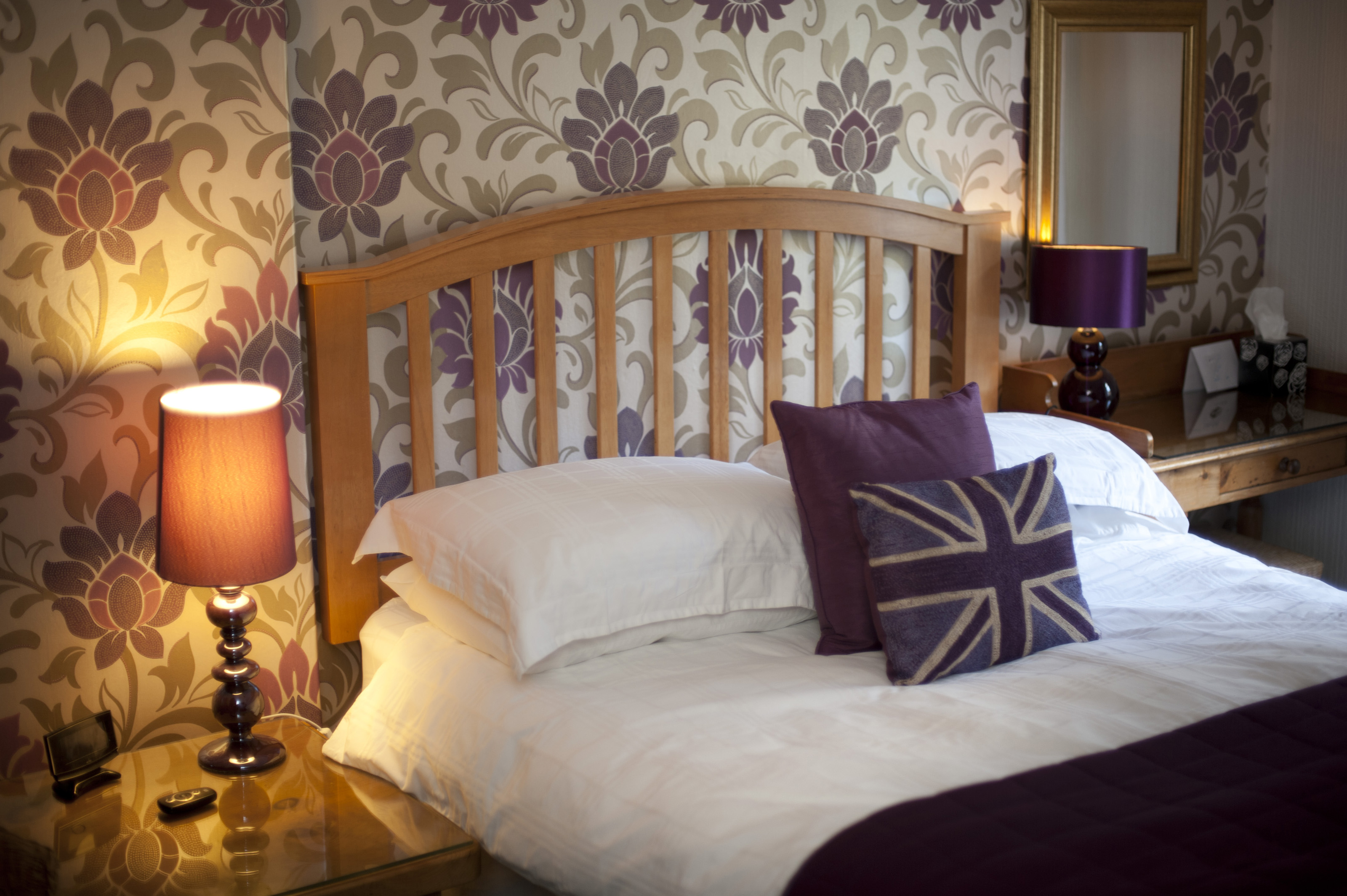 Keywords: bed, bedroom, british, headboard, homely, patriotic, union jack, wooden, cushions, double, decor, home, interior, flag, lamp, contemporary