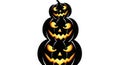 Group of orange Halloween jack-o-lantern decorations in the form of pumpkins with painted faces on a black background