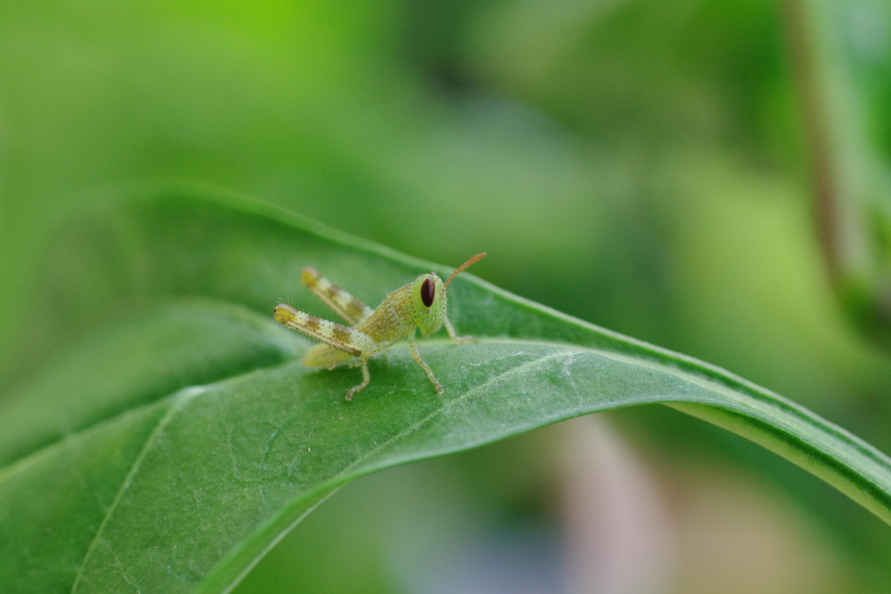 green coloured small locust restng on a leaf