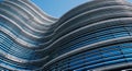 Wavy decorative metal facade on a modern building in an oblique full frame architectural background