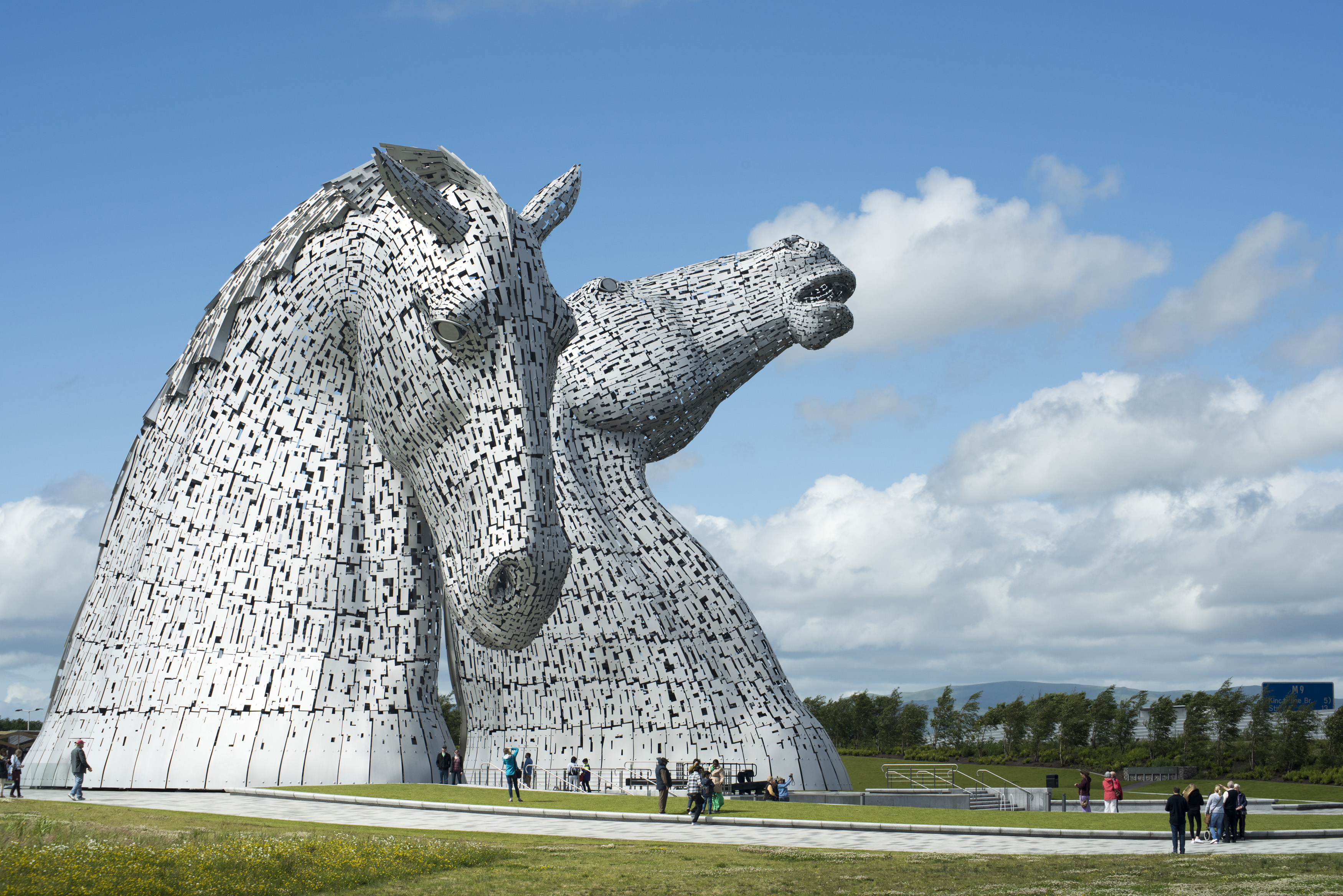 Photo Title: Scenic view of tourists at the Kelpies, Falkirk