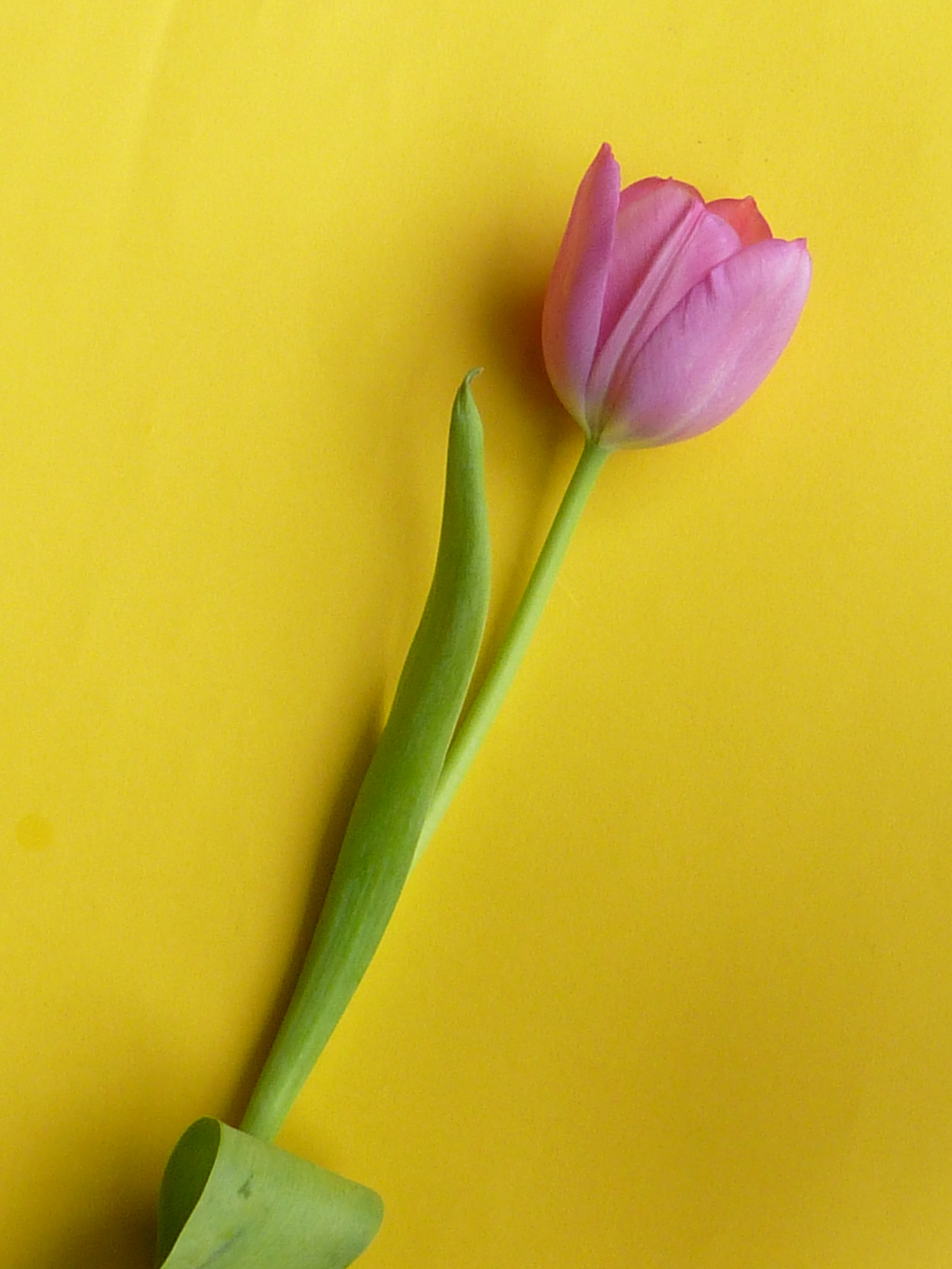17360 One fresh cut tulip on yellow background - this image by easterstockphotos is licensed under a Creative Commons Attribution 3.0 Unported License.