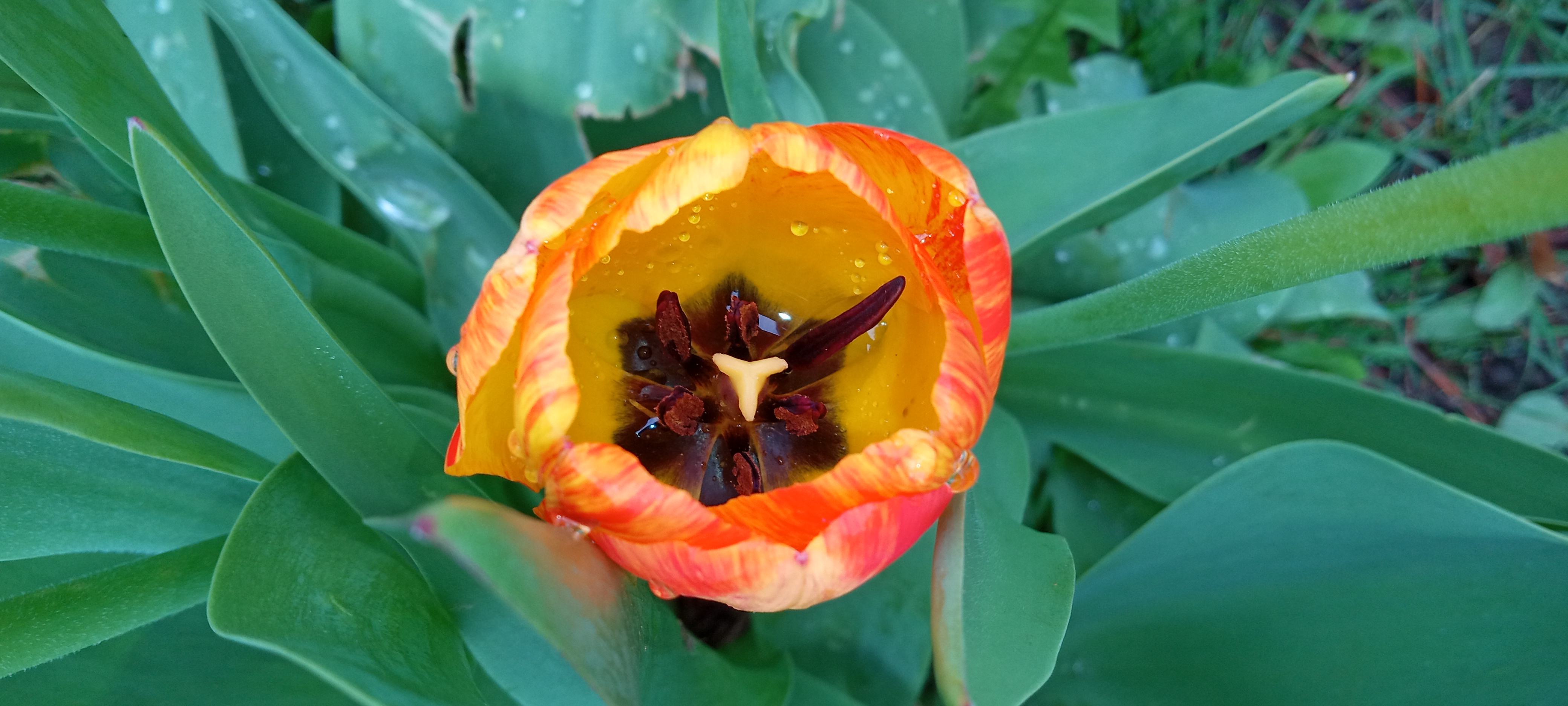 Gorgeous orange and yellow tulip in full bloom