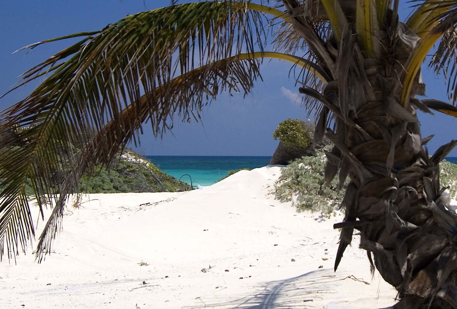 Clean white sand and blue ocean, near punta allen, Mexico