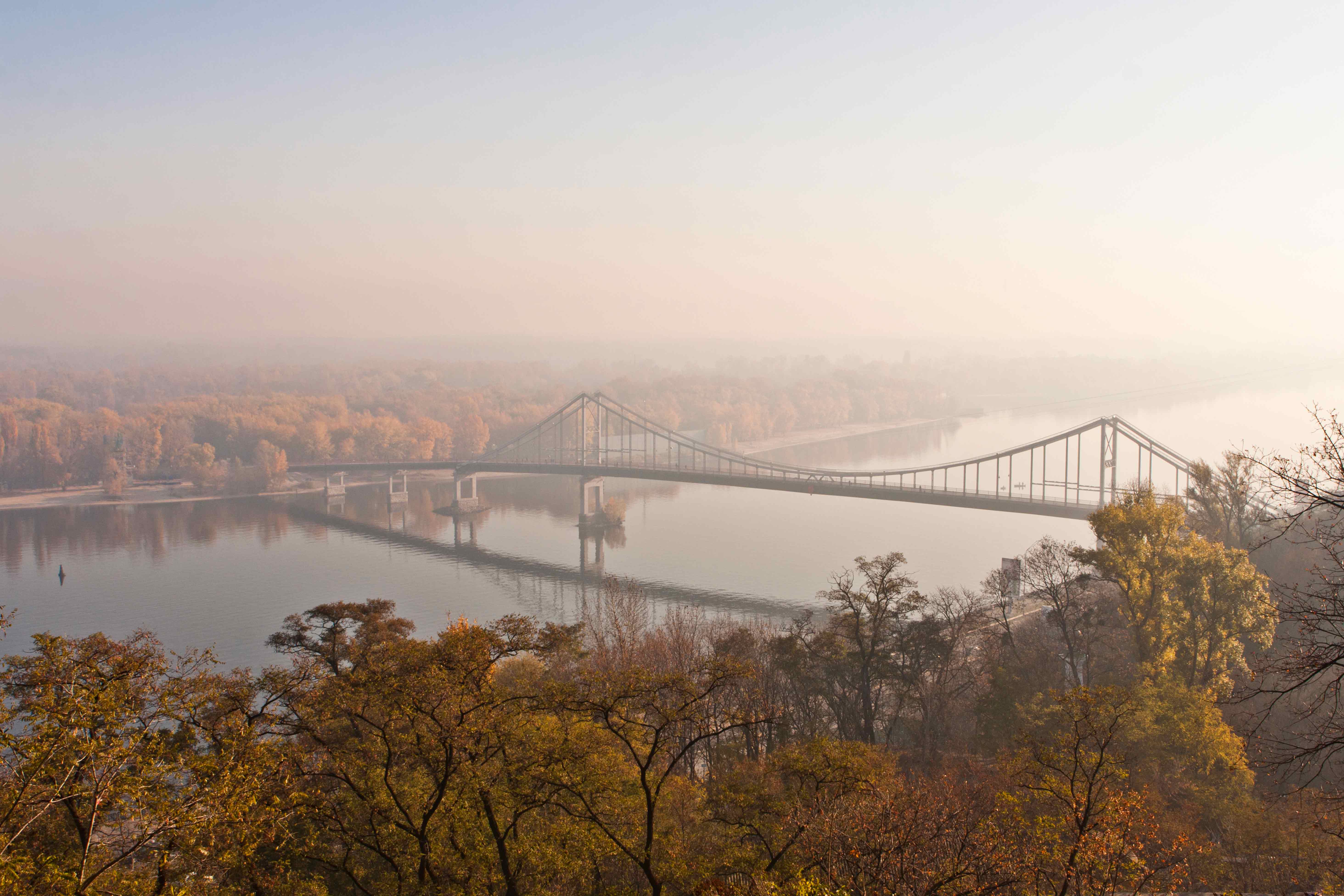 12049 pedestrian bridge on dnipro river in kiev in hazy autumn morning 1 - this image by Alexeynovo is licensed under a Creative Commons Attribution 3.0 Unported License.