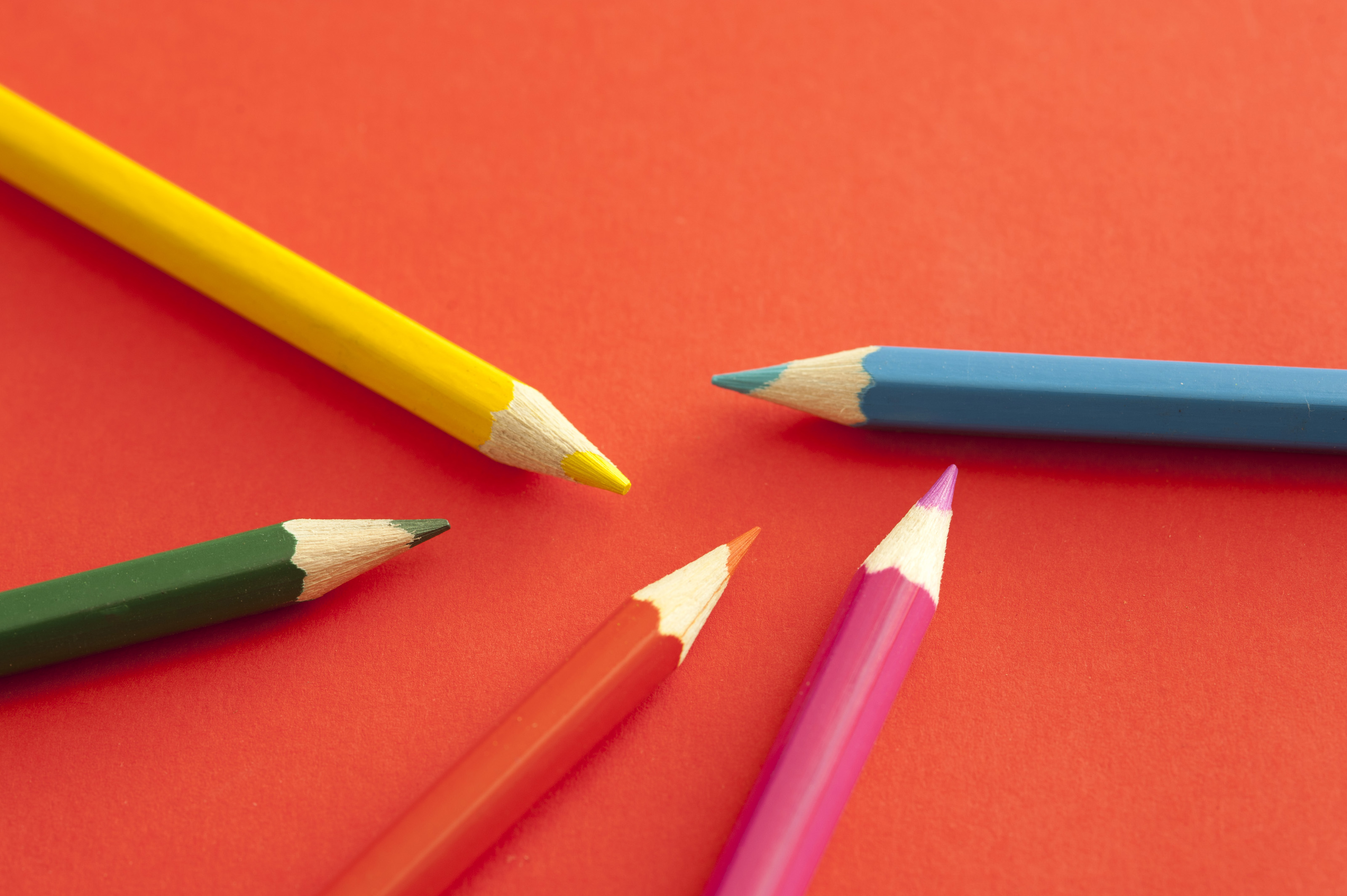 12183 Randomly placed colored pencils on red - this image by gratuit is licensed under a Creative Commons Attribution 3.0 Unported License.