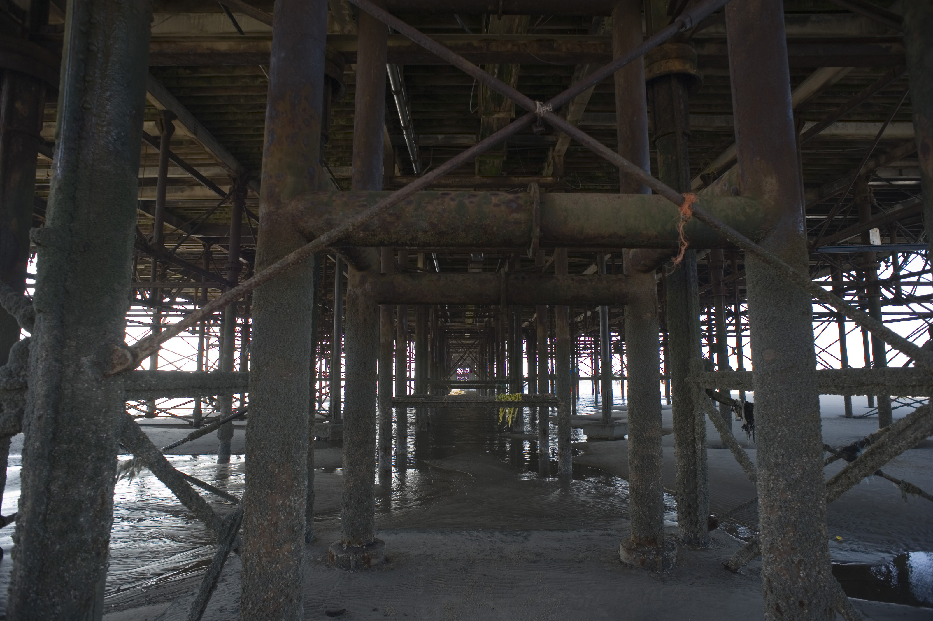View of the supports and structure under the historic Blackpool pier