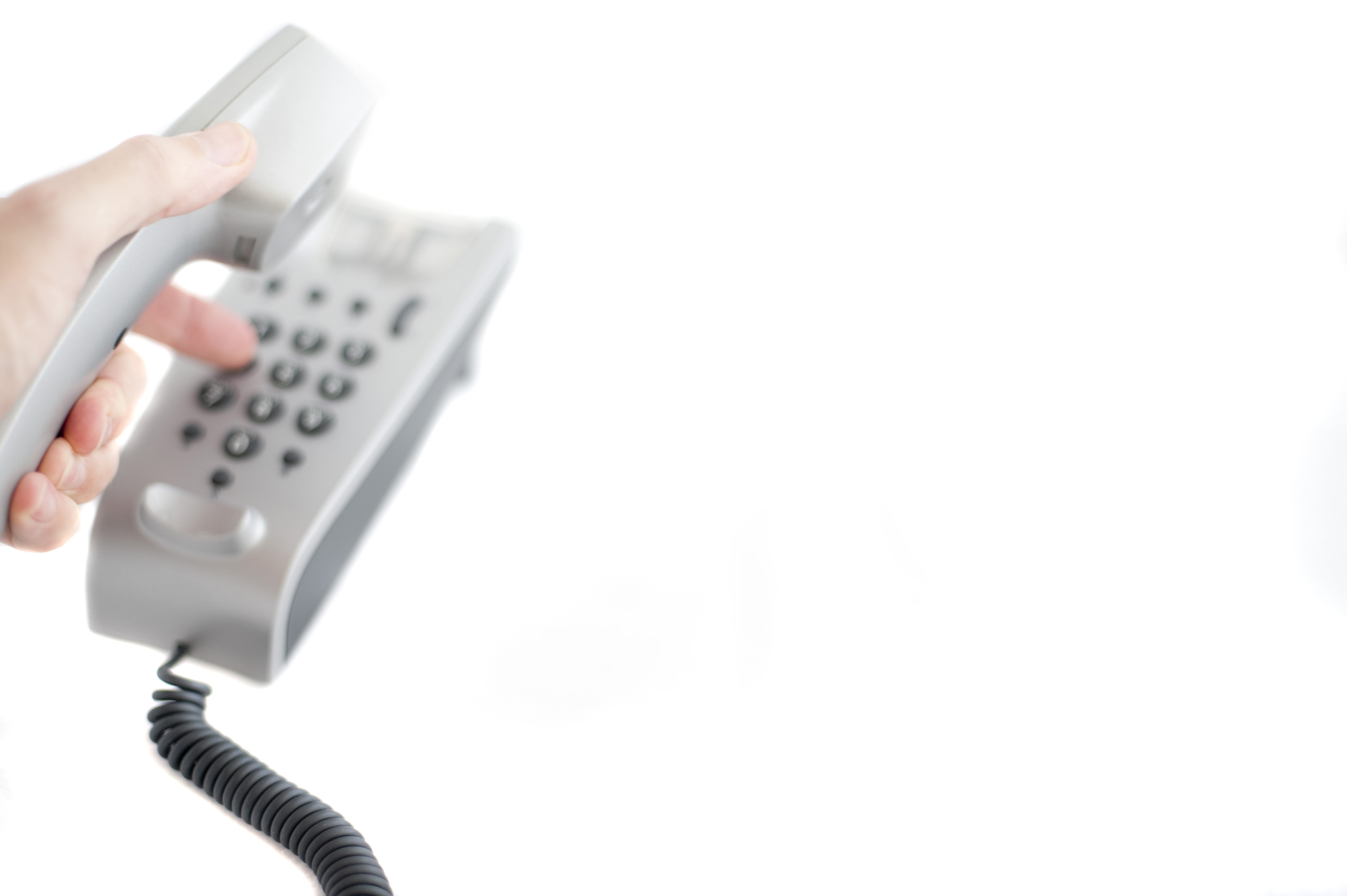 Keywords: dial, dialing, button, call, hand, office, business, copy space, white, cutout, high key, phoning, phone, telephone, cord, coiled