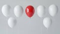 a singe red balloon isolated on a white background