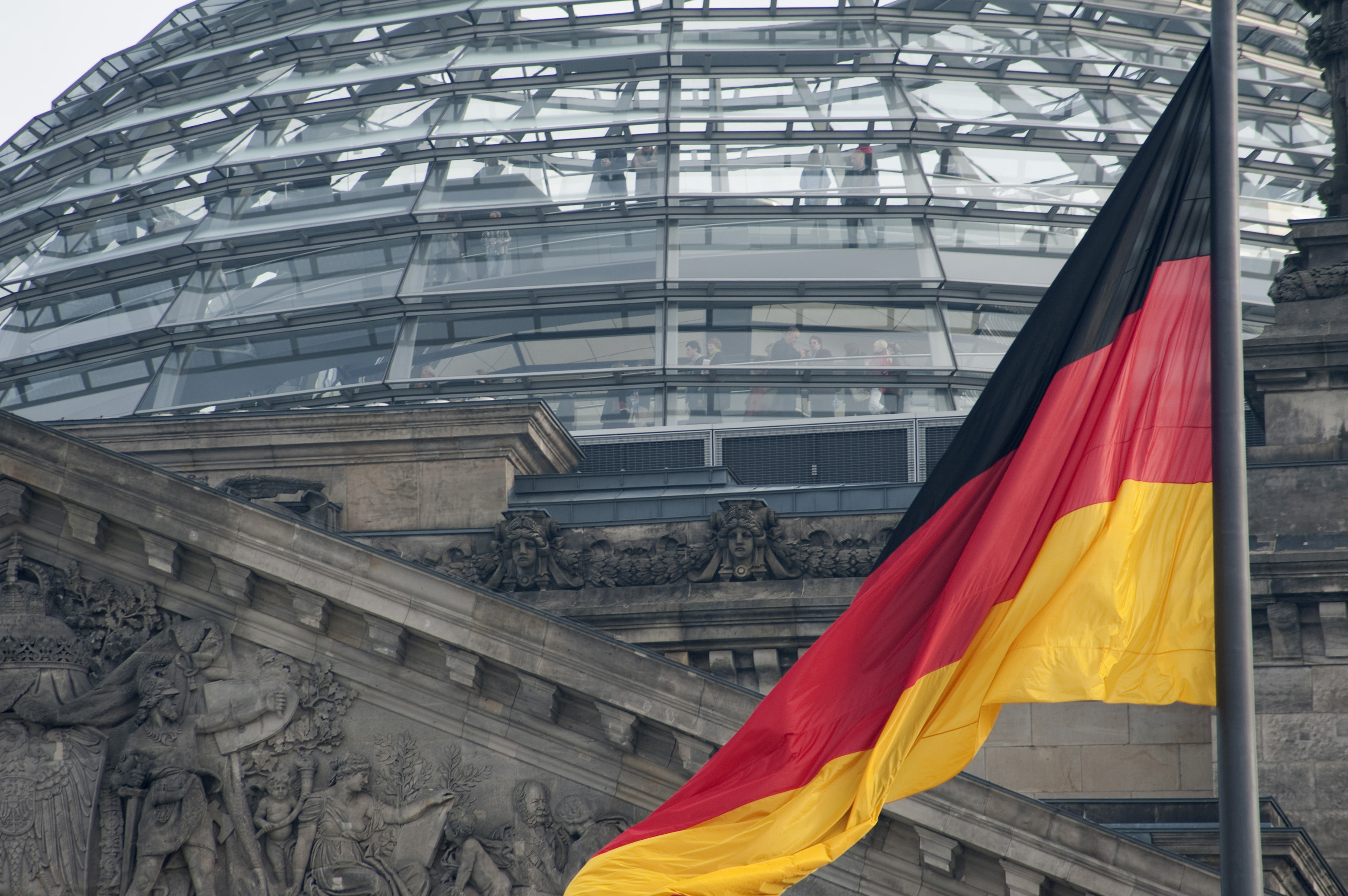 Keywords: berlin, germany, black, red, building, gold, glass, flag, dome, patriotism, german, ensign, tricolour, reichstag, emblem, national, flying, state, bundesflagge, parliament