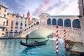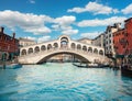 The famous Rialto Bridge in Venice with the Grand Canal flowing beneath.
