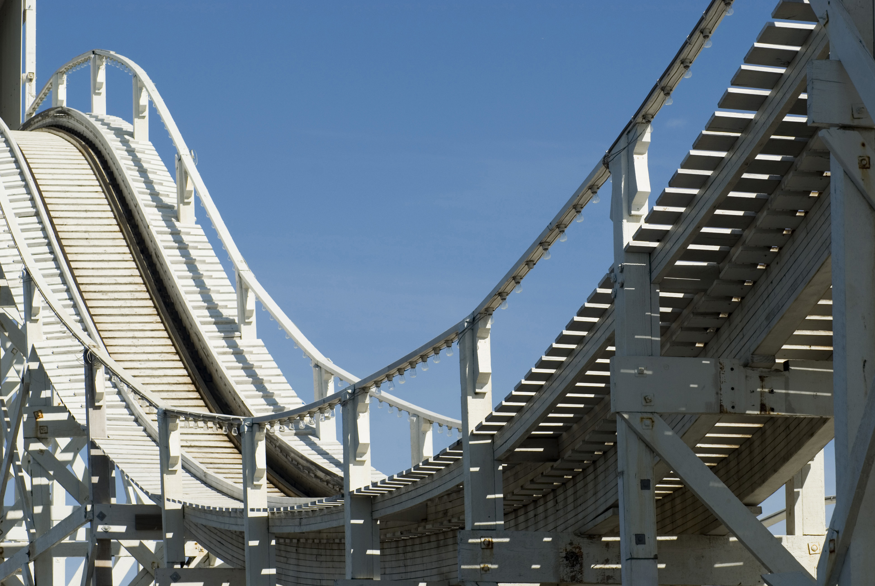 Keywords: amusement, entertainment, funfair, park, ride, rollercoaster, structure, track, thrill, dip, valley, big dipper, empty, speed, engineering